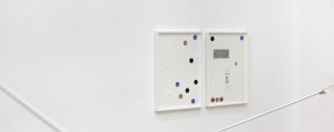 In the gallery, a large window at its entrance is complete with a YouTube play button. It’s a throwback to some of his earlier YouTube as a Subject series, inspired by the unmerited triumph of the poorly designed video hosting site over all others, its banality entering the material domain in his 2011 performance of its familiar loading circle at the Netherlands’ GOGBOT festival. Sat on the floor, eight white circles surround Dullaart, which he moves repetitively, generating a ring in endless rotation performed and then projected on a wall in the same space.