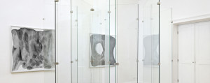 That motif continues inside, where a wall is dotted with the same ubiquitous loading sequence. Elsewhere, printed float glass work, a light-green, shimmering and transparent material, is printed with various screenshots from untitledinternet.com. Floor-standing and hanging from the walls of Future Gallery, they resemble the countless screens that surround us in our daily lives. Looking out from windows at home and in to them through screens on our devices, we use both for collecting information. That information is filtered in one way or another, as thick glass screen shots display images and text the same way a webpage does. What content we see depends on where we stand, what search engine we’re looking at and how that perspective is monitored and obscured by personal algorithms, marketing strategies and governmental regulation, among other interests.