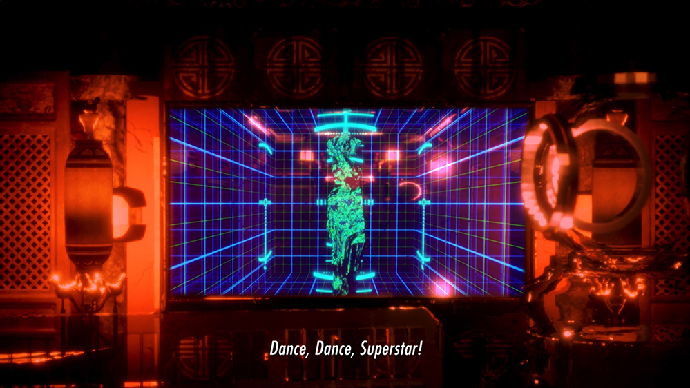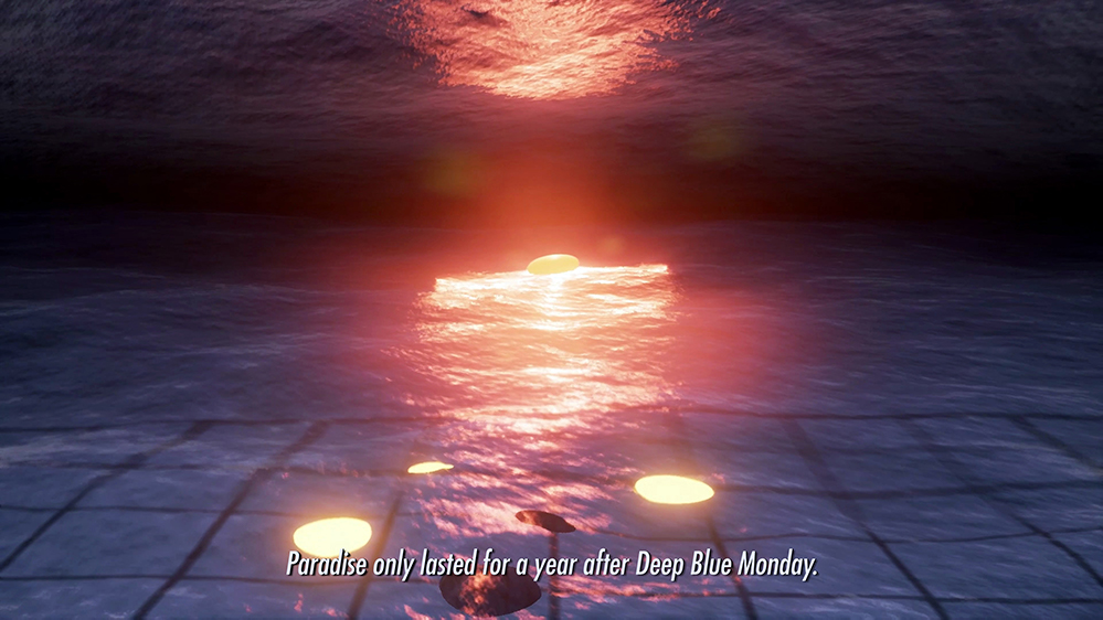 Despite UE4’s impressive realtime graphics, it’s not a perfect simulation — no game engine is, yet (though UE5, to be released in full later this year, promises to blur the line between render and reality for good). In The Sinofuturist Trilogy, momentary glitches in the game world space and the grainy pixelated textures of a souped-up future city, pitch-perfect half-time performance, apocalyptic jungle, or a moody satellite floating down a river beneath a star-studded sky collide with Lek’s dreamy score to conjure something almost sublime. As a kind of shared ritual space, this glitched environment opens an affective register that paradoxically makes you feel more attached to these conflicted characters — both human and not — that are together woven into a world whose operating system extends far beyond their control. After all, it’s not so different from our own.