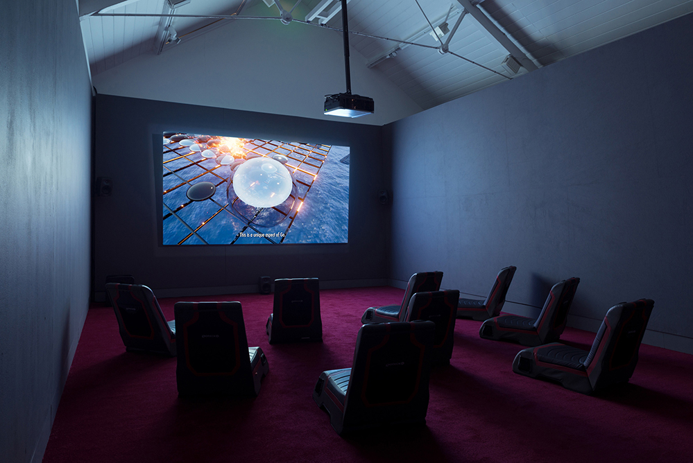 Lawrence Lek, AIDOL 爱道 (2019). Installation view. Photo by Kristin Stoylen. Image courtesy the artist, Art Museum KUBE, Ålesund + Sadie Coles HQ, London.