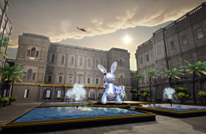 Commissioned for the Dazed Emerging Artist Award, the performance uses video game software to create a future world in which the Royal Academy of Arts now stands as a privately owned luxury estate. Helicopters loom above the penthouse helipad, Anish Kapoor sculptures hover around a luxuriously lit swimming pool, and Corinthian columns stand testament to the deliberate neo-classical opulence of the place.