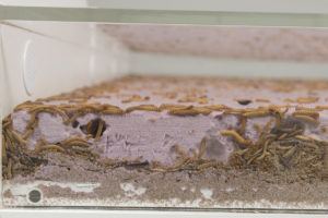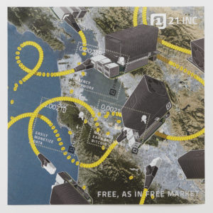 Currently displayed at the prestigious Preis der Nationalgalerie für Junge Kunst exhibition at Hamburger Bahnhof, Berlin, ‘All you need is data’ takes the form of 90 printed canvases that together create a rough timeline of the DLD conference. Images include Sheryl Sandberg bearing a heartfelt smile with her hand to her chest, a cheesy airbnb powerpoint slide with the words “access is more powerful than ownership” and a well-lit stage where a privacy panel is being conducted. These images are collaged together into didactic boards that wouldn’t look out of place at an advertising pitch. While the boards are informative, they are still only snapshots, a poor substitute for experiencing the actual conference or even hearing a recording of it. In the same way that we consume material online, the installation invites us to swiftly process small chunks of information. It’s just one of the ways the work tries to approximate technology in its form and structure.