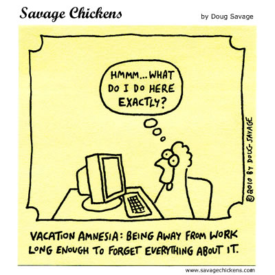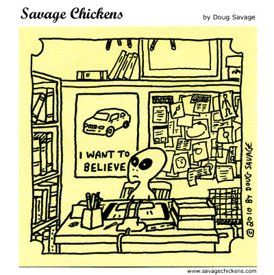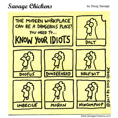 Doug is a left-handed office worker who one day released all his irony & cartoon potential through theSavage Chickens, at first in the office then on sticky notes using a Staedtler pigment liners, now he posts them on his blog. Stupidly funny, many of you working in an office might very probably identify yourselves with these chickens.