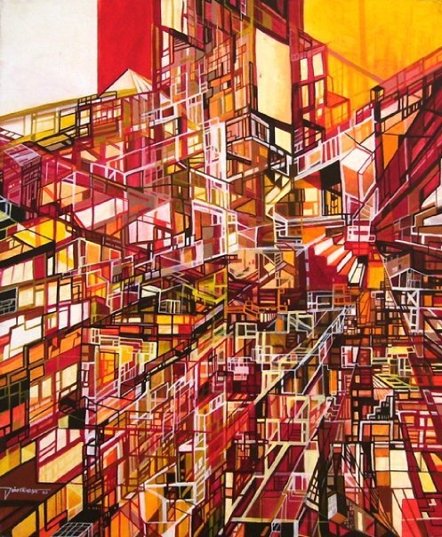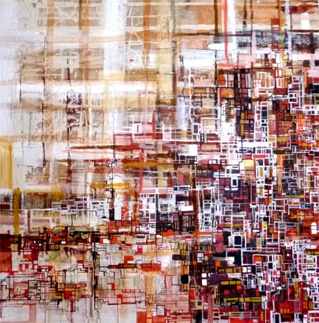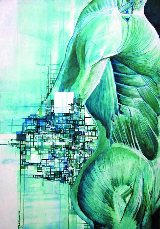 A Portuguese now living in London whose tissued paintings remind us of some of the asphyxiating atmospheres Tsutomu Nihei used for his Blame characters. Organic-mechanic … very punk in the end.