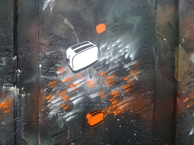 Just like the French Space invaders the toasters are one of those street icons that have decorated our streets giving them many times a much more enjoyable aspect. Since 1999 they’ve been appearing on posters, banners, stickers and murals all over the world from berlin, stockholm, los angeles, san francisco, tokyo, rio de janeiro, sao paulo….. haven’t you see them?