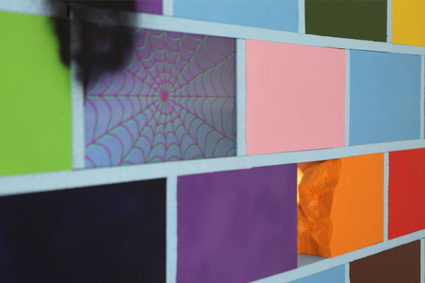 “This work takes on the form of a decrepit wall, a once monolithic theme park appendage.” This colourful wall embedded with manic animations comments on the continual reuse of Munch’s iconic image over time. Appropriating various interpretations of The Scream from popular and entertainment culture, Lung nods to Macaulay Culkin’s screaming face from Home Alone and the masks from the teen slasher film, Scream.