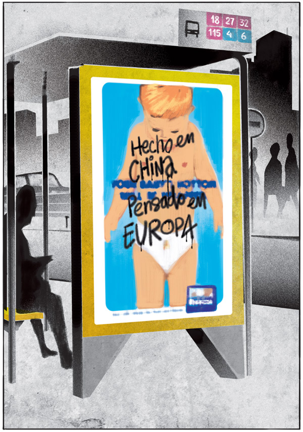 Marcos & Danide describe their work as a “very detailed cocktail of society & economy ironies, those we have to live with”… “those we have to phagocyte everyday”. “We came up with the idea of crying out loud the daily atrocities we experience, making this comic has been therapeutic” says Danide.