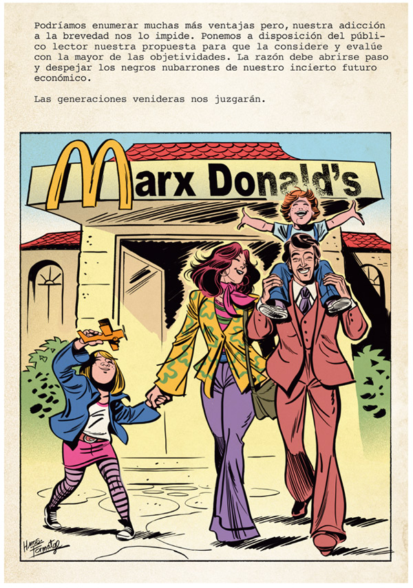 We’re a bit unsure if we’d like a world such as Fagocitosis.. where Marx Donald’s is our favourite fastfood chain or street cleaners are required to speak several languages or master the “digital environment” (even if this, unfortunately it does happen in our current world)…. the X-men have become economy x-perts and our society in general, is portrayed as a grotesque egoistic bunch of money-driven individuals (maybe more like a mirror).