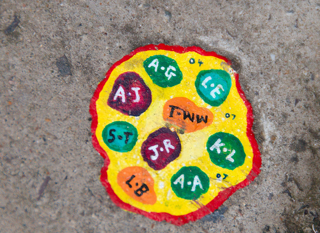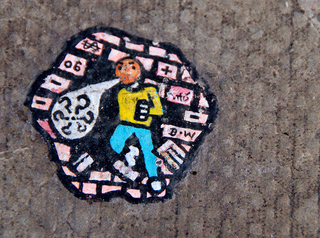 Now I intently look at the pavement so as not to miss one of Wilson’s many works that he has scattered throughout the city over the past 6 years. Perhaps I shouldn’t forget to look out for cars…
