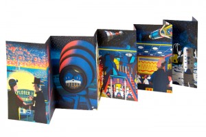 Golden Cosmos, the Berlin based couple co-founders of the collective Nepomuk have been producing hand-printed books and illustrations since graduating a couple of years ago. Their latest work (as a collaboration with Nobrow) has just been released in the form of a  Leporello book and should delight most aviators…