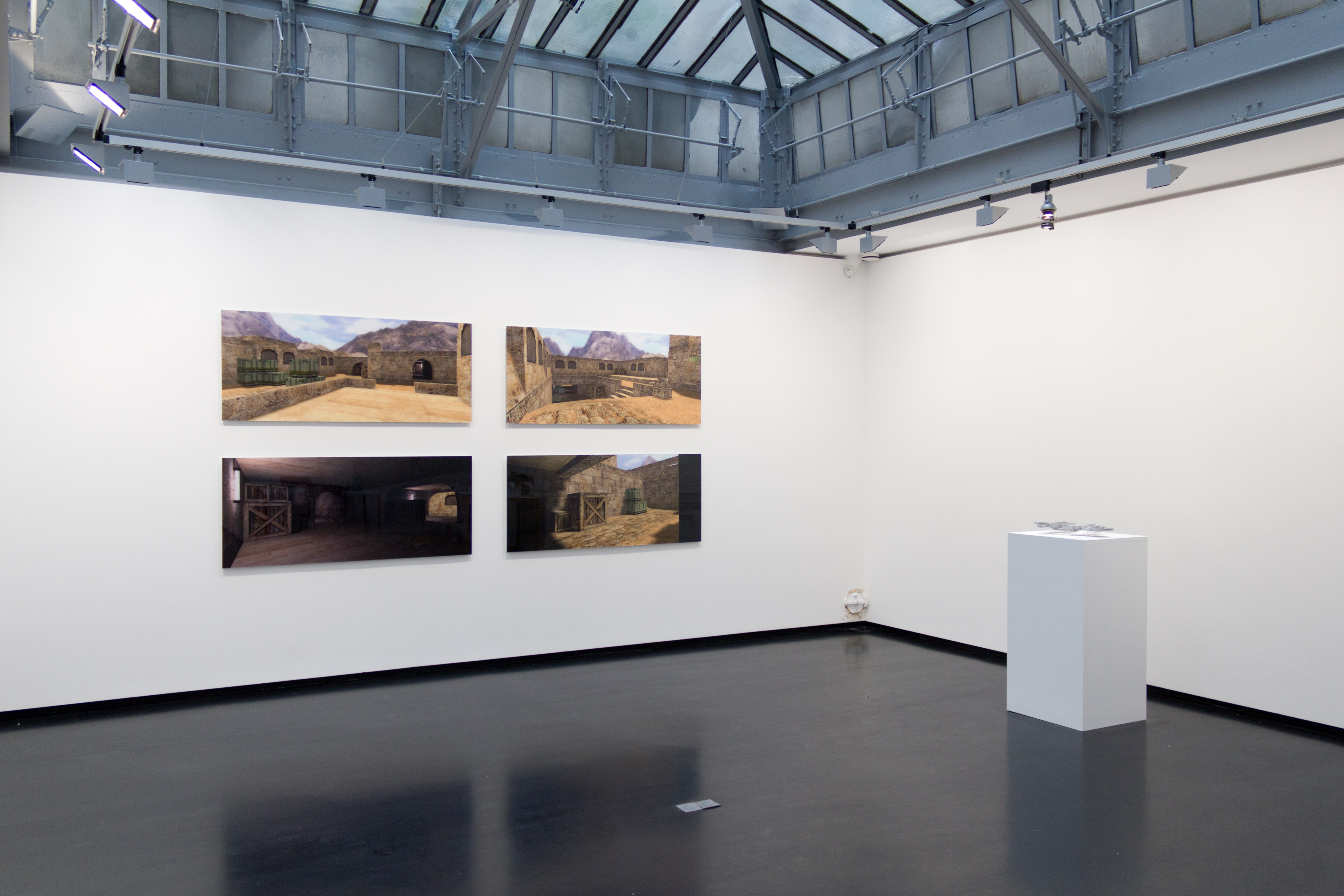 Bartholl’s solo show presents a series of works playing on the idea that the Internet is a permanent, eye-catching stream of signs and codes we analyse and filter on a daily basis. Screens are our windows into the digital world, like painting was treated as a view to the real world during the Renaissance. ‘Print Screen’, reposing on a declination of negative, painted screenshots on paper, canvas, Plexiglas or aluminium, functions as a visual metaphor. It can also be perceived as an allegory for the short display-duration of images or data on the web, so as to make them elusive. ‘Your Art!!’ sets up private screens as public exhibition spaces, while ‘Private Password’ stresses the limitless landscape of personal data and its invading hackers with an engraving of 12,000 LinkedIn user’s passwords, stolen during the summer 2012.