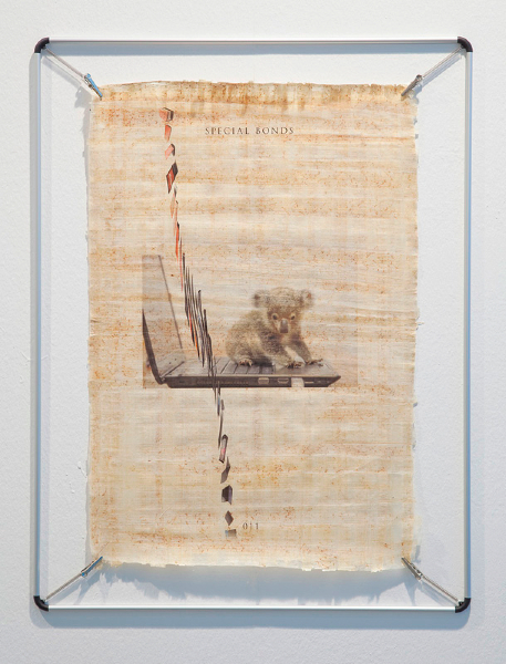 Katja Novitskova, 'Special Bond 011' (2013). Digital print on papyrus and aluminum frame, 31.5 x 23.5 inches