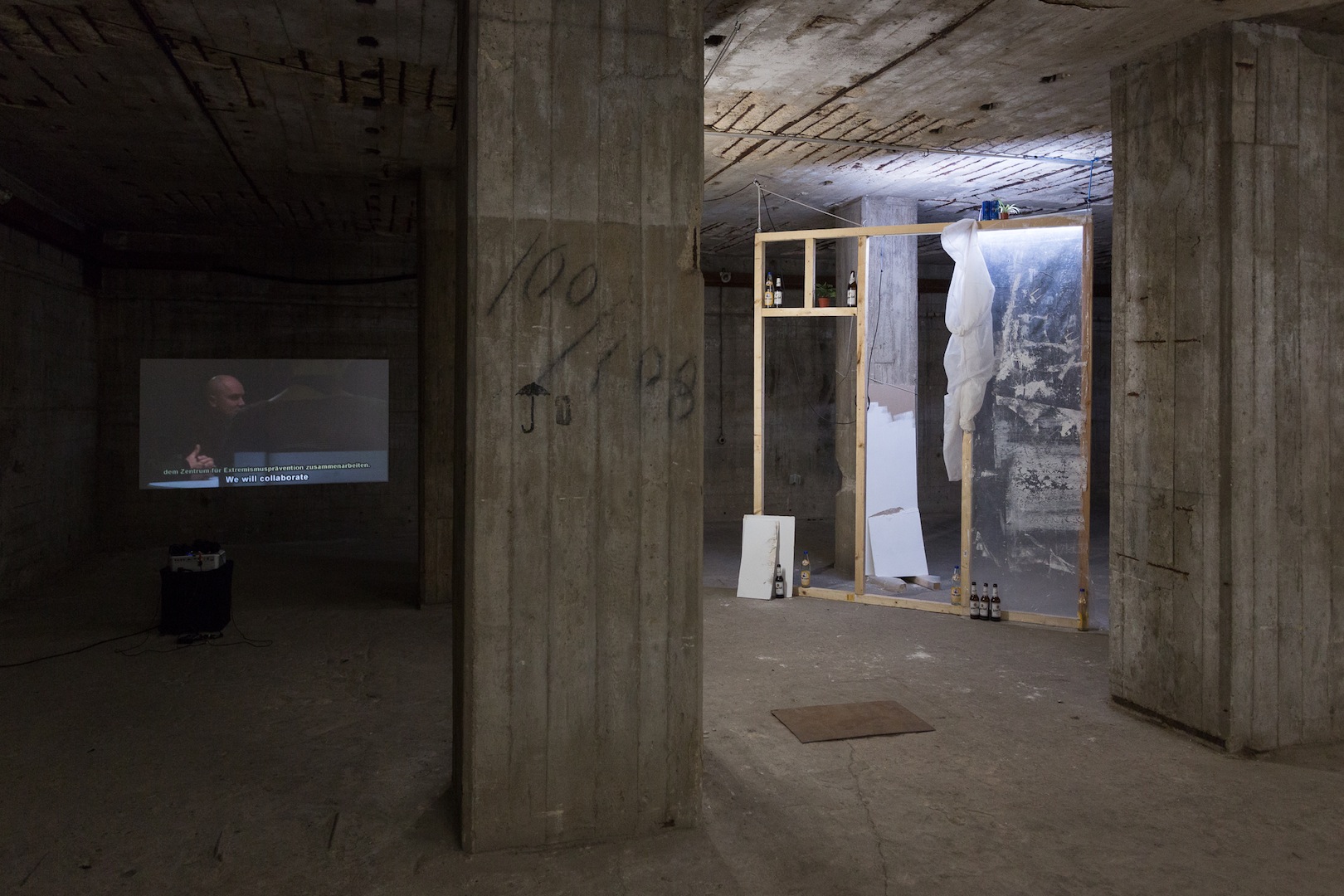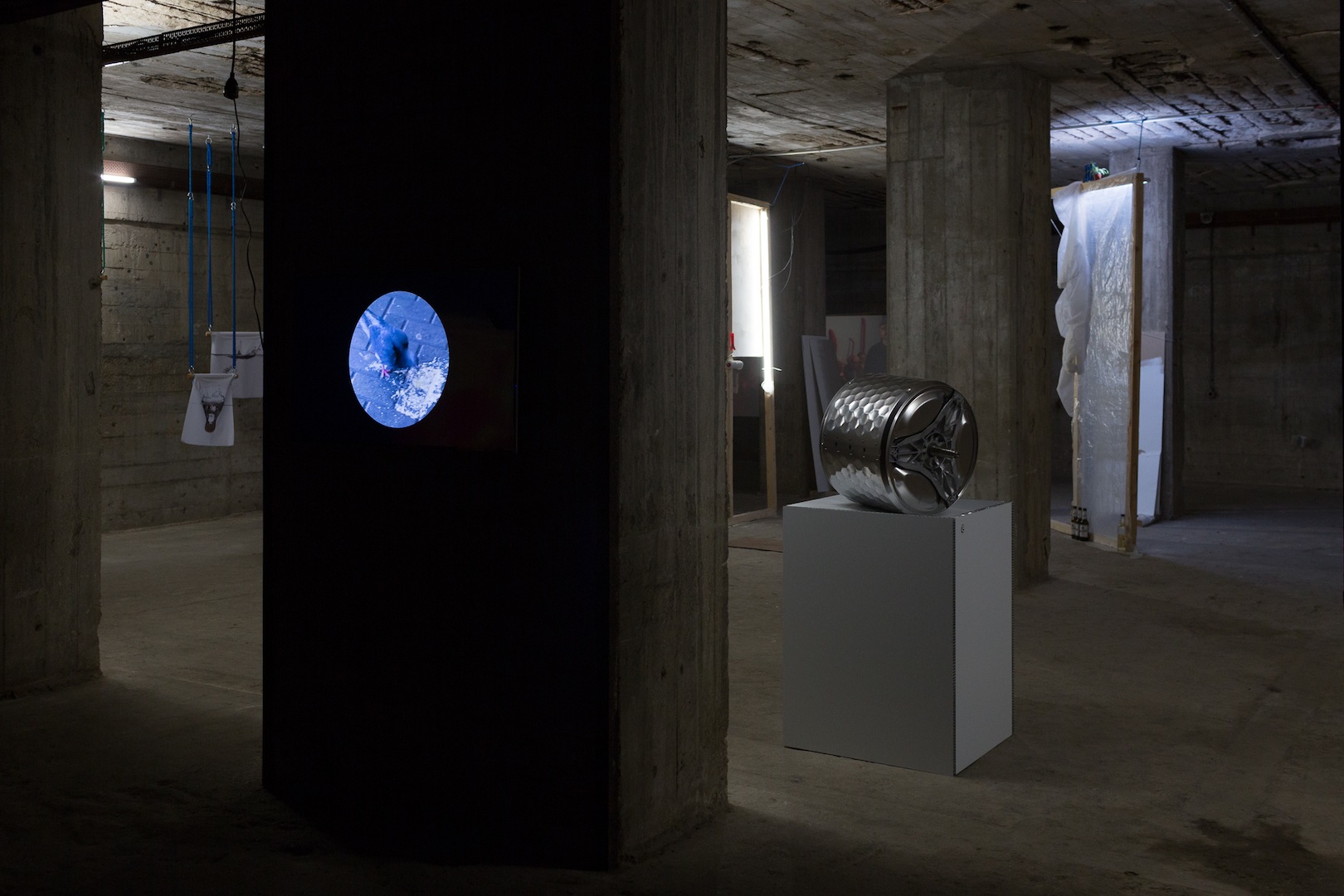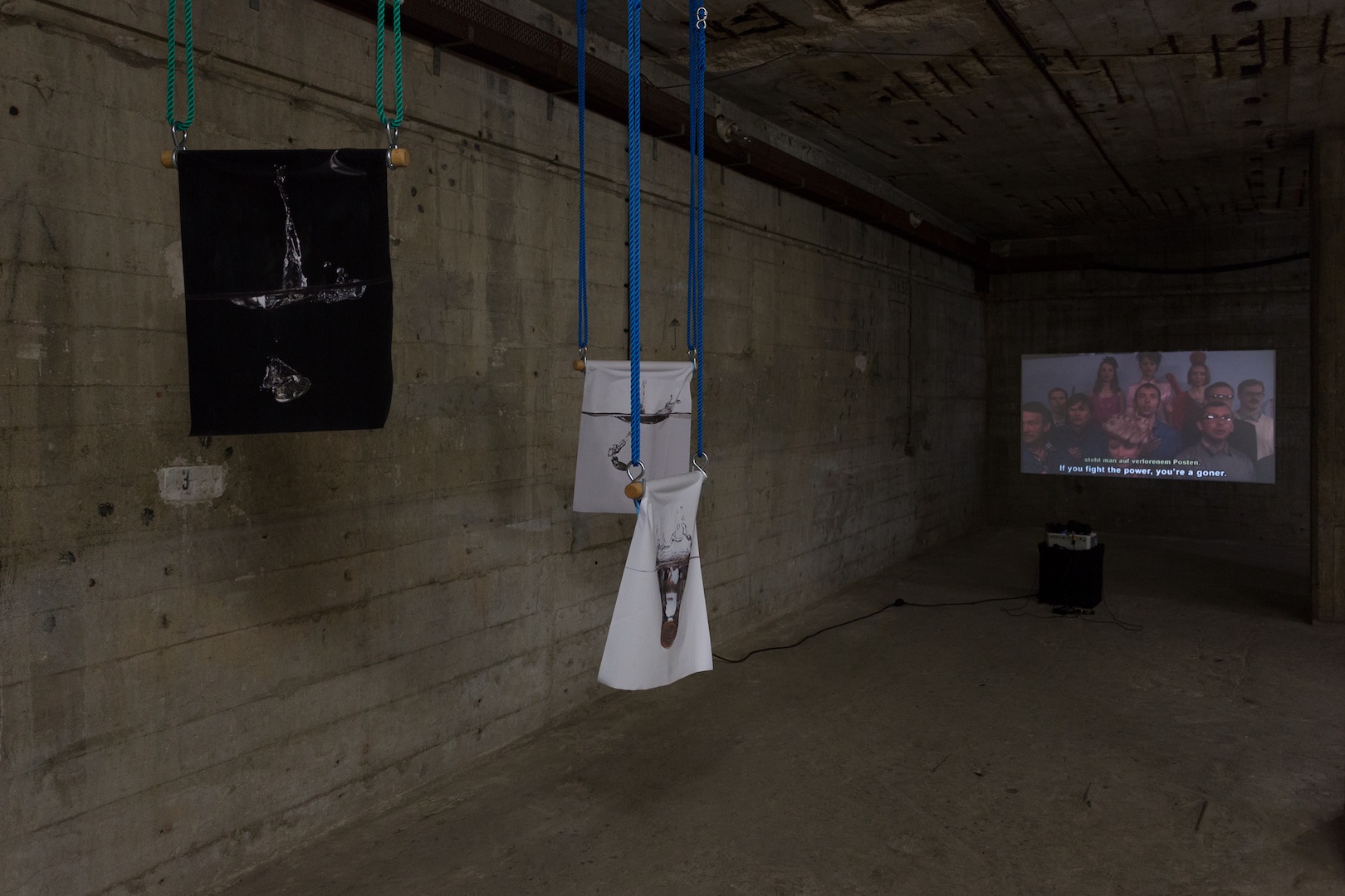 The concrete underground rooms of Berlin’s Alte Münze, accessed through heavy bank vault doors, provide an aesthetically crude backdrop for raw reflections on money and emerging forms of social engagement, both online and off.