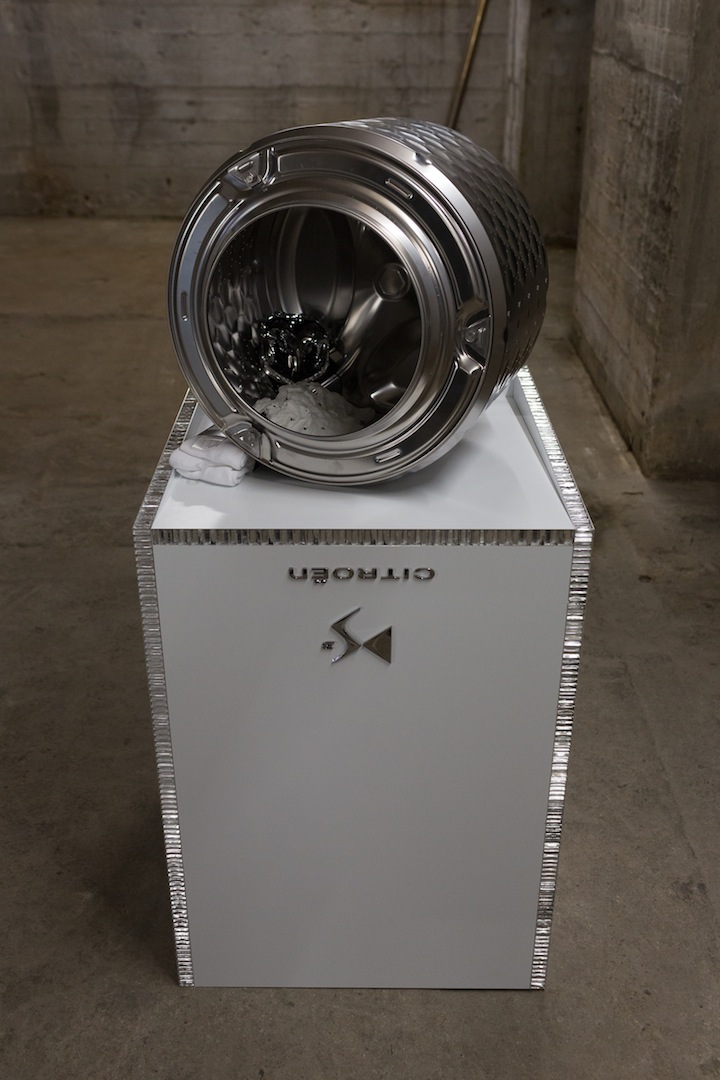 The exhibition is broadly divided between these poles. Here, it presents either a tongue-in-cheek reproduction of commercial imagery, construed in an ironic repositioning putting our everyday experience of advertising into stark relief as in Thie’s piece –but also Yngve Holen’s sculptural work ‘Sensitive 2 Detergent’ (2012) and Josephine Meckseper’s video ‘Mall of America’ (2009) –or more academic and researched musings on particular political events and theories.