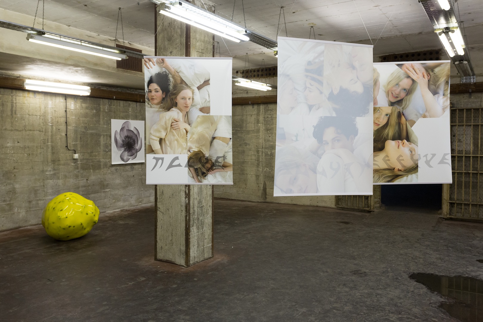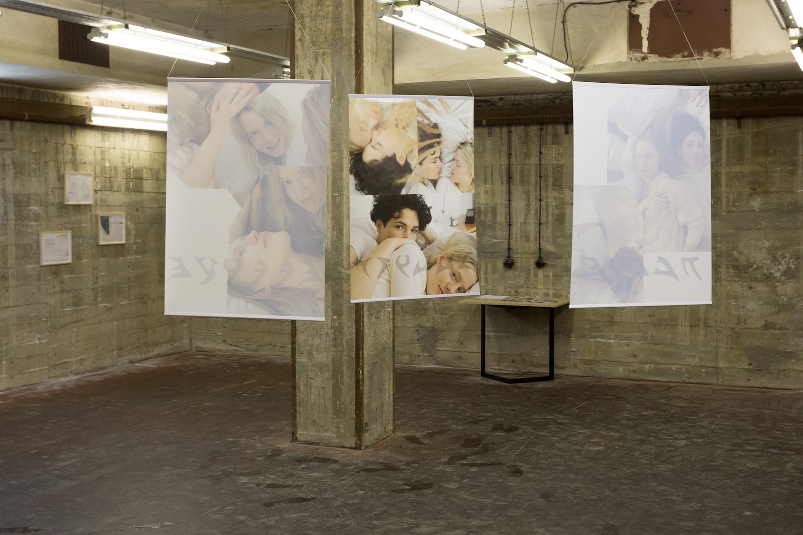 Britta Thie’s images of a group of young, pale white models (herself included), lounging nonchalantly, replicate the visual language of advertisements in a starkly banal counter-gesture to some of the more abstract pieces in the show. Hung in the middle of one of the rooms, the women in the photos watch from all angles as visitors circle the outer perimeter, quieting critique with a simple gaze from the commercial ‘other side.’