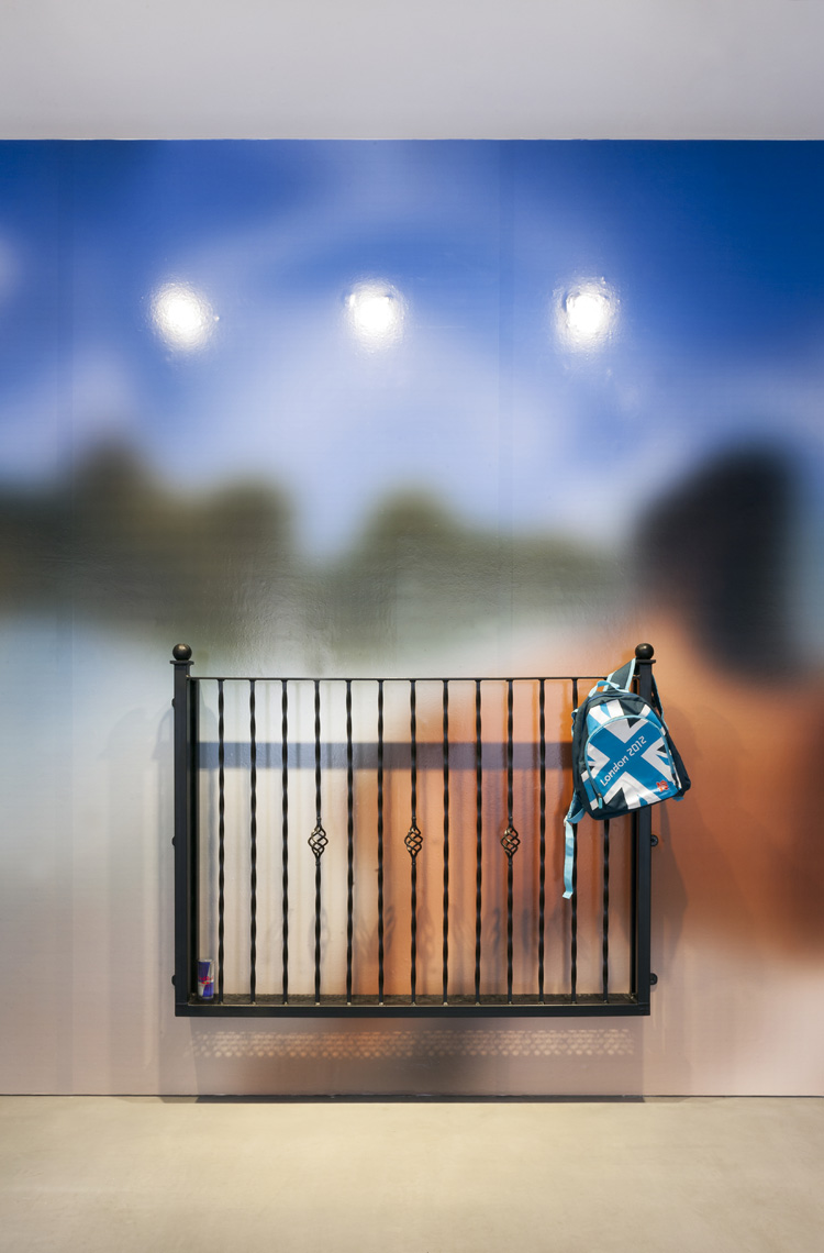 Garish and cheerily oppressive, the top floor acts as both altar and interrogation of the influence of the image, as another unanswered letter to Jennifer Knoll follows Dullaart’s 2013 one in Rhizome. It hangs unassumingly next the gallery exit as the artist creepily lists the names of Knoll’s children before praising her global impact as “a faint, blurry, pixelated focal point.” The ambivalent symbol of cast iron railings on the opposite wall melts into more ‘Jennifer’ wallpaper, while an official Olympics backpack hangs from said balcony of ‘Balconisation, London 2012’ (2014). It’s a reference to Dullaart’s recently published ‘Balconism’ manifesto, while the Stringendo exhibition plan adds: “Julian Assange sought refuge in the Ecuadorian Embassy”. With that one recalls the artist’s declaration, “every win fails eventually”. It’s no wonder the lightbox portrait, featuring a man and his dog and glimmering with the sillhouette after-effect of a PhotoShop ‘magic wand’ tool, is relegated to the downstairs. The 19 flags representing the “enemies of internet” (that is, the free one) –including the United States, Saudi Arabia, Russia, China, UK  –are in a room around the corner, in the dark and underneath what you see upstairs.