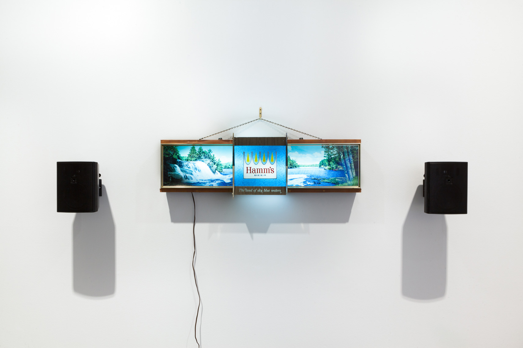 Constant Dullaart, 'Hamm's Beer Sign', backlit sign, speakers, 2014. Courtesy Carroll/Fletcher.