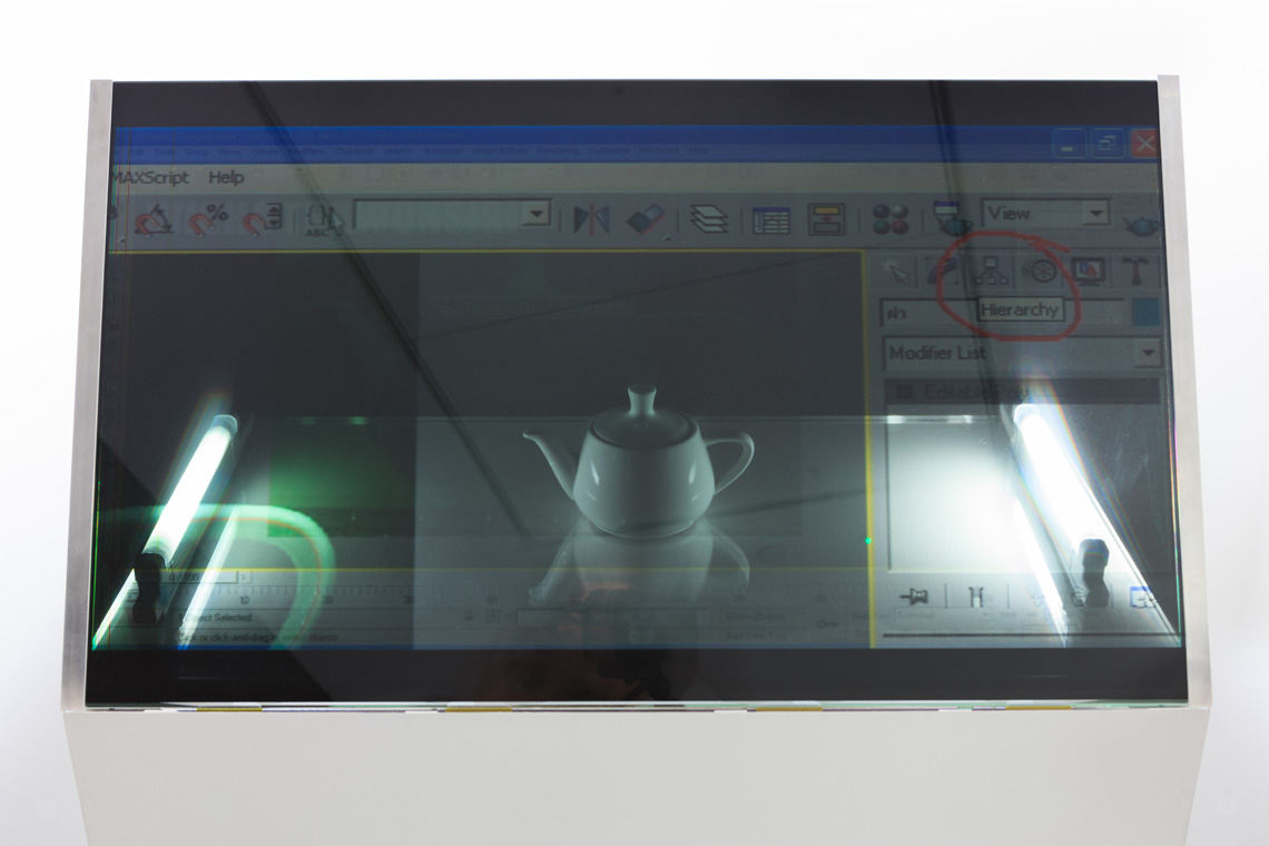 Constant Dullaart, 'Utah Teapot Playlist', screen, youtube playlist, melitta teapot, 2014, 135 x 72 x 41 cm