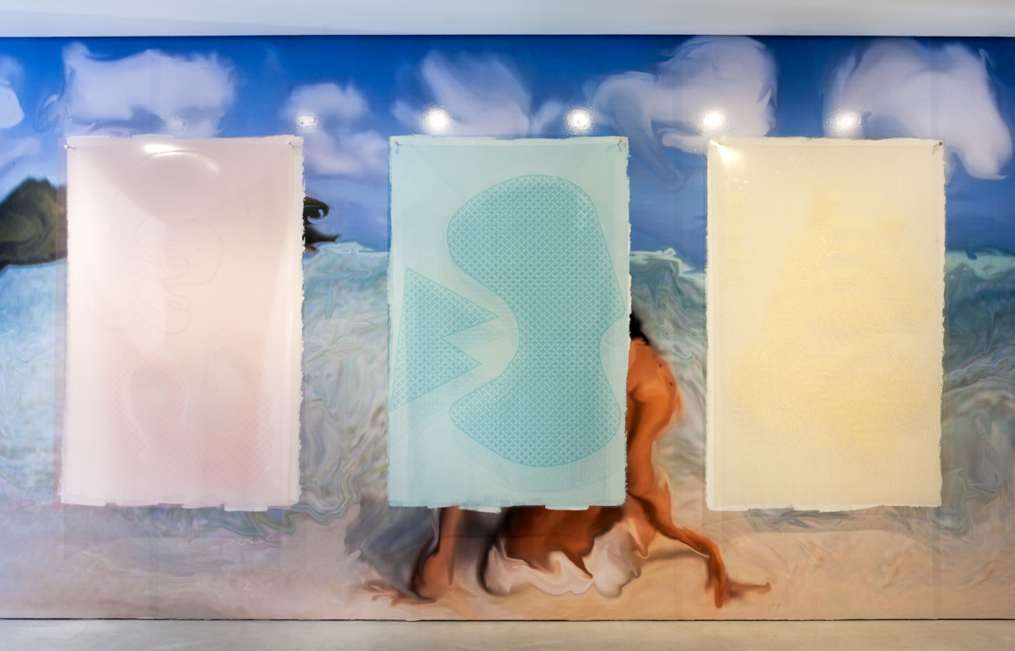 Constant Dullaart, 'Photoshop Brushstrokes', float glass, 2014, 265 x 129 cm