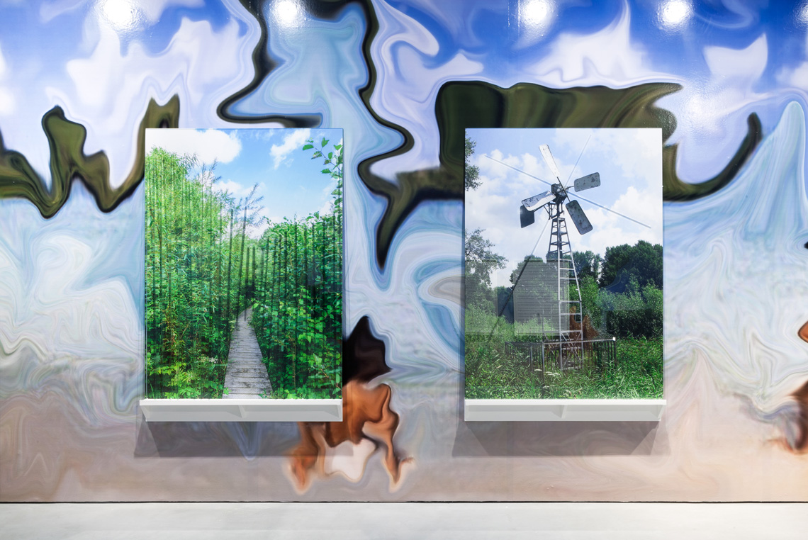 Constant Dullaart, windmill c-prints on aluminium, glass, installation view, room 3, 2014