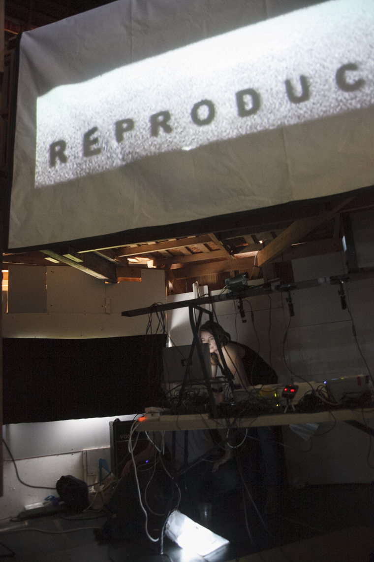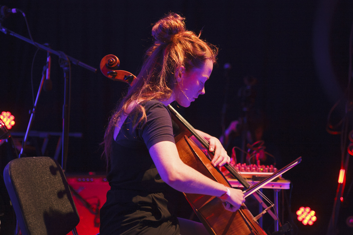 Lucy Railton at Space-Time Festival (2014). Photo by Mike Cameron. Courtesy Wysing Arts Centre.