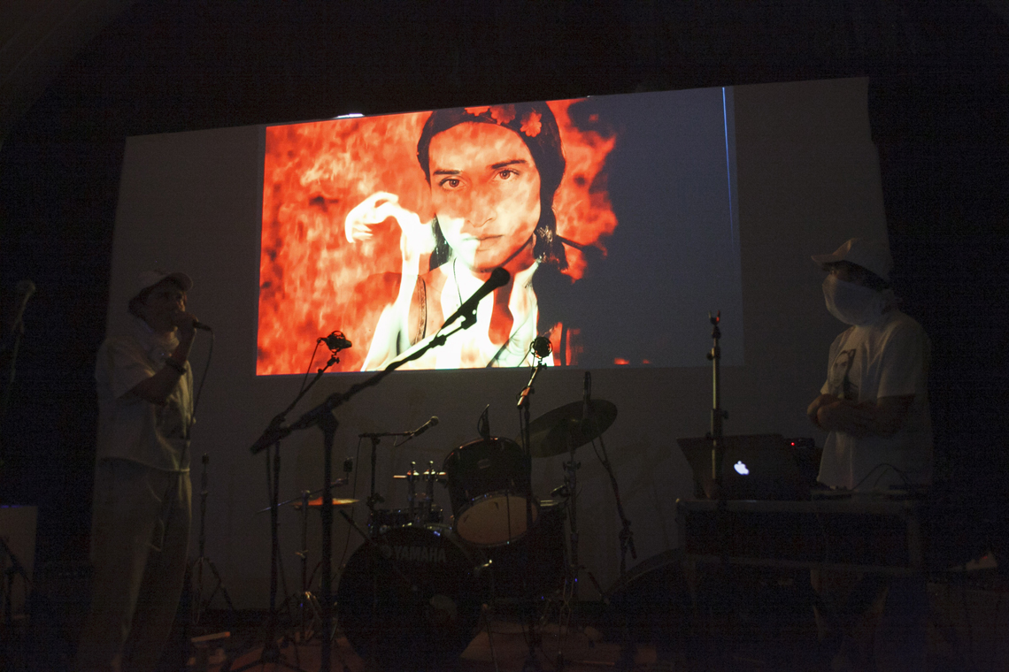 The day is blurred in places and the program was more or less constant, even relentless; if you wanted you could spend the whole day immersed in music of various kinds, but I didn’t have the stamina. There was Yola Fatoush – ostensibly an electroclash band of the post-punk persuasion, but perhaps also an alter-ego or some kind of performance art hologram? I’m confused by the Ken Burns effect photo experience playing in the background, which looks like a pretty white girl running around some late-summer idyll in a nightie thing and you can see her bum. Two people on stage walk around in printed t-shirts and one of them sings in a mic. It was okay.