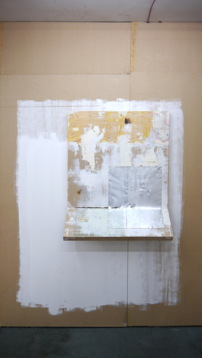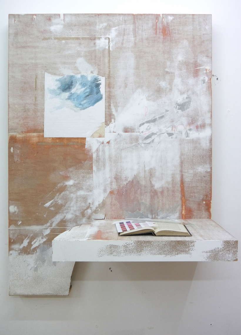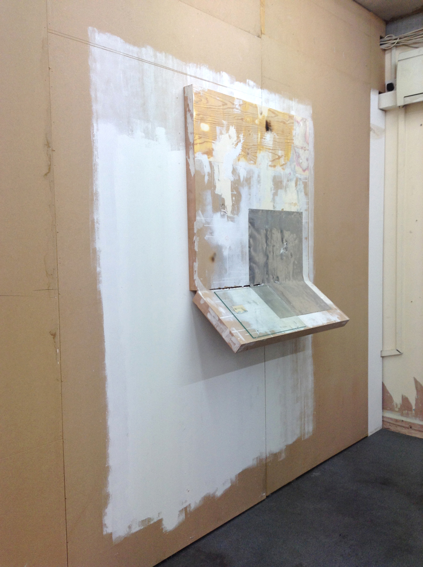 The paintings – wood and aluminum, plaster sanded down to a papery slick, canvas inset, a tile – hang around the space in their reticence, eloquently illegible. In two of these, the wood has been hacked into what may have once been a word, and then hacked away again. Despite the obsessive finishing elsewhere on the surface, this wound – an unmaking, an unsaying – glares out like an open mouth without a word in it. There are a lot of smart stylistic decisions here, cleverly subverting the various art-historical traditions of painting versus sculpture and all that shit, but this isn’t the best or most interesting thing about the work. Silence, or silencing, is the theme; wash refers to a cleansing process, but also to the processes of erasure and obfuscation implied (both historically and materially) by the notion of whitewash. Shiomitsu’s ‘Notes on Whiteness’ explores this idea of whiteness as a (false) neutral, enforced and naturalised by a cultural philosophy of what is pure, originary, unspoilt. To wash, then, is to remove something.