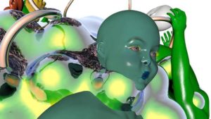 “This is your future”, announces the Auto Italia press release, while Serpentine galleries’ intensive two-day Extinction Marathon questions whether that future is a desirable one. Inspired by the announcement that half of the world’s wildlife was lost to human ‘progress’ in the past 40 years, posters and UV brochures by David Rudnick and Raf Rennie appear at the Serpentine Sackler Gallery, along with an installation by Katja Novitskova of her famous stock animal cutouts set to the backdrop of alien planets as an example of the accelerating and “never-ending relationship of image into object”. Extinction Marathon companion site EXTINCT.LY streams the presentations while writer Huw Lemmey summarises them live on a blog. Kari Altmann, UBERMORGEN, Alex Mackin Dolan and Emily Jones contribute online commissions to the site with its header of a redesigned extinction symbol by Marathon co-curator Ben Vickers, with Kei Kreutler and Lizzie Homersham. It’s the same one that flashes across the Third Line booth wall at the end of Sophia Al-Maria‘s devastating tour of Frieze Art Fair proper. In a continuation of its theme of catastrophic endings, Al-Maria presents ‘Whale Fall’ (2014) as it narrates yet another pending extinction of a species through a largely blank blue screen. Jack Halberstam’s polemical ‘The Homosexual Says Yes to Sterility’ appeals to a humanism less concerned with individualism, reproduction and self-preservation at all costs, instead calling on an end to the human itself (“No Future”).