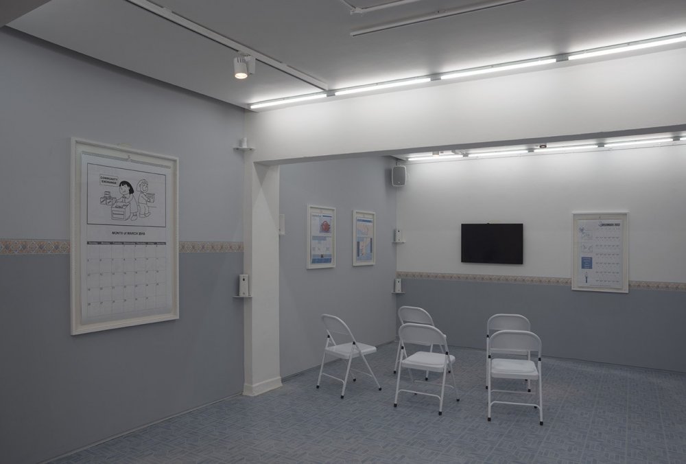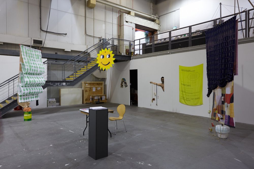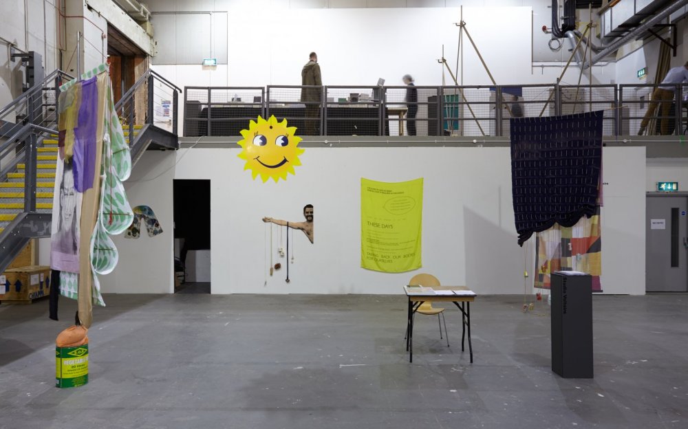 “If love hurts and work makes you suffer, I think we should reconsider”, says the voiceover of Maja Cule‘s ‘Do What You Love’ (2014) video for her Facing the Same Direction exhibition at Arcadia Missa. Launched along with an indiegogo campaign aiming to raise $80,000 so its subject – writer and illustrator Anna Kachiyan – could “pursue independent interests in projects”, the installation, with its wall-print of a deskchair and video projection of ‘DWYL’, brings the office into the art space and wonders whether there’s a difference. The POLYMYTH x Miss Information exhibition at Auto Italia doesn’t even question the apparent oxymoron of the term “creative practitioner” by inviting working designers, including Metahaven, Pablo Jones Soler, April Greiman and Pinar&Viola, to take over the art gallery space. The shift in context shifts the works’ resonance, whether it’s the impressive clarity of scale in the Metahaven x Holly Herndon music video collaboration, ‘Home‘ – viewed through a large LED screen rather than YouTube – or Jones’ CGI product design painstakingly rematerialised as physical object.