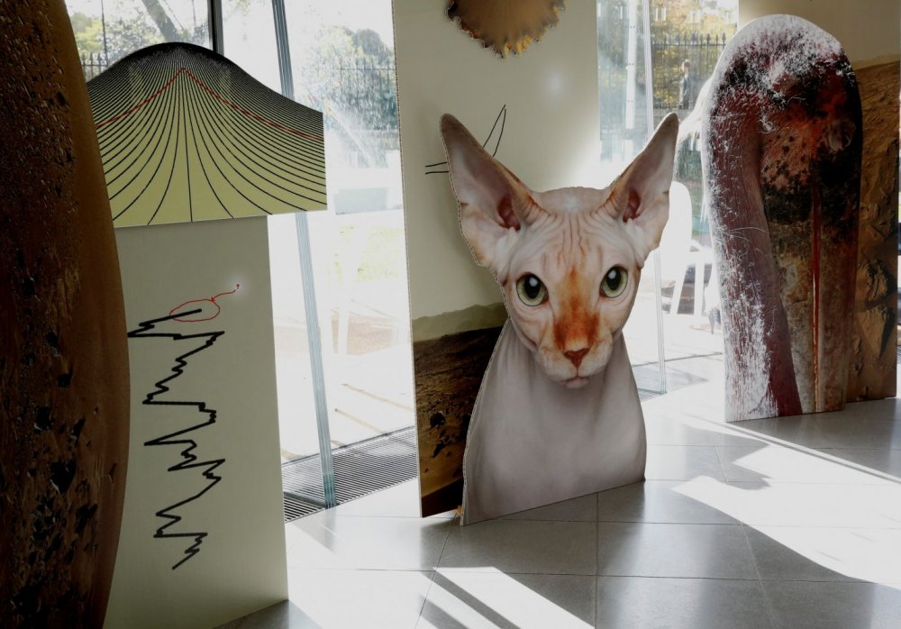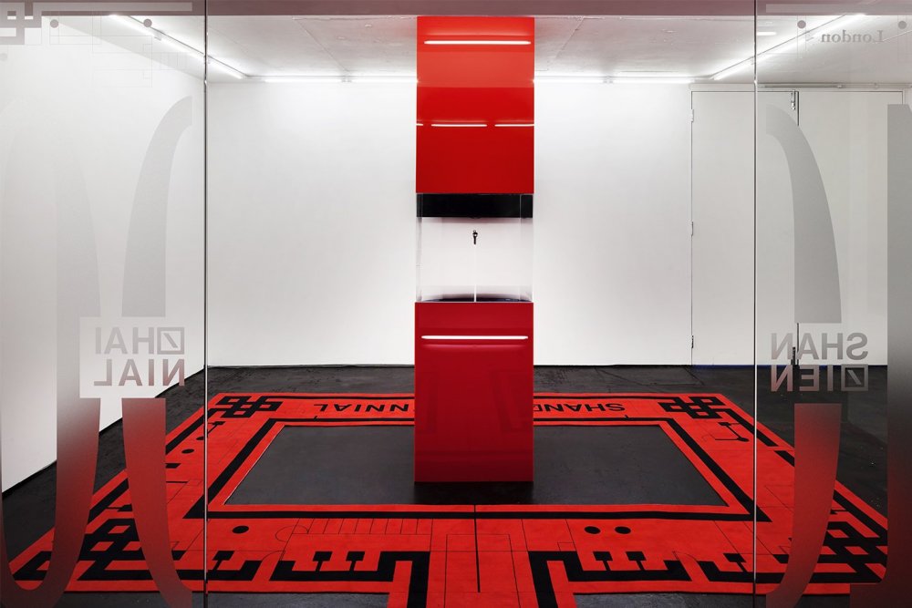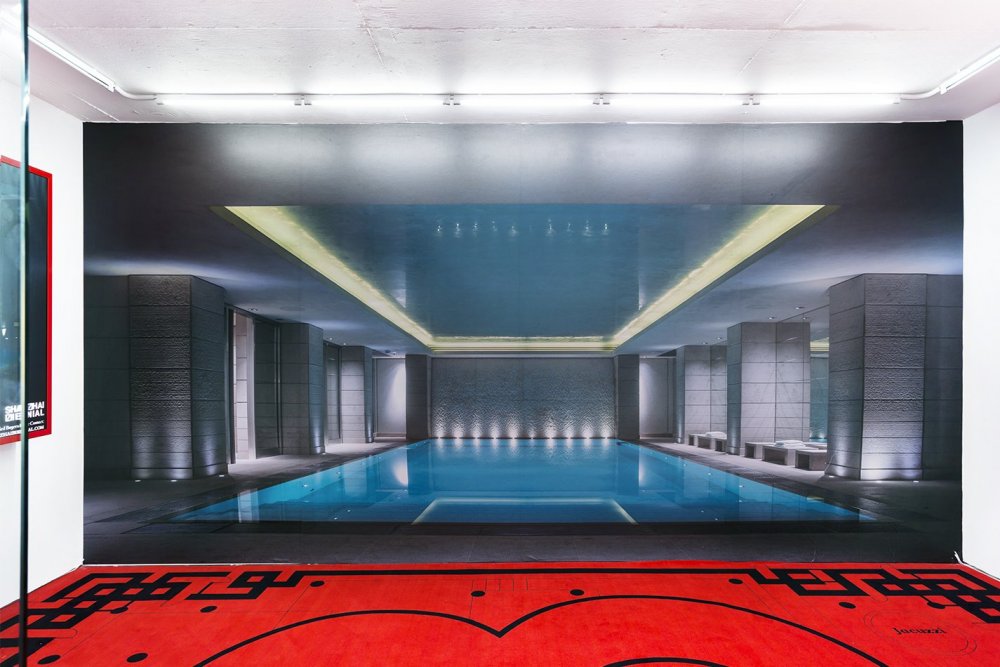 That might be a bit of an obvious observation: Life presents a thing, the artist reflects in kind. But in a week that thrusts both the struggling and the stupidly wealthy into a shared timezone, it’s hopeful at best, interesting at least, to see what can come of the resulting interactions. There’s the boutique branding display of ‘urban’ street wear at Dean Blunt’s New Paintings, where a life lived in the rapidly gentrifying area of Hackney extends to the body commodified; stretched denim becomes the canvas for an art object for sale at Space gallery. Up near the heart of the CBD in Mayfair, Project Native Informant presents the off-site edition of Shanzhai Biennial‘s Frieze ‘Live’ installation, Shanzhai Biennial No. 3: 100 Hamilton Terrace. It’s a less lurid display of luxury real estate advertising with a house-shaped key floating above a mirror in its own vitrine, as well as glass doors and a wall-length image reproduction of the pool one stands to inherit for an easy £32,000,000.
