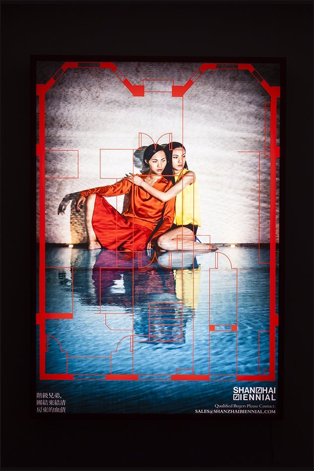 The collective of artists and collaborators involved in the final product literally inhabit the Frieze-emulating branding and flipped Deutsche Bank logos decorating images of bodies presenting a lifestyle in a light box. Except these bodies reveal more about the exploitative foundations of said lifestyle by drawing parallels between power centres and systems, across time and place, suspended in poolside poses taken from China’s Rent Collection Courtyard. That’s the garden of life-sized Socialist Realist sculptures depicting feudal oppression (and eventual revolt) inside the estate once owned by a pre-Revolution property owner in Sichuan Province. A call for the oppressed to “unite to settle the blood debts with the landlords!” is concealed in the Chinese characters in a corner.