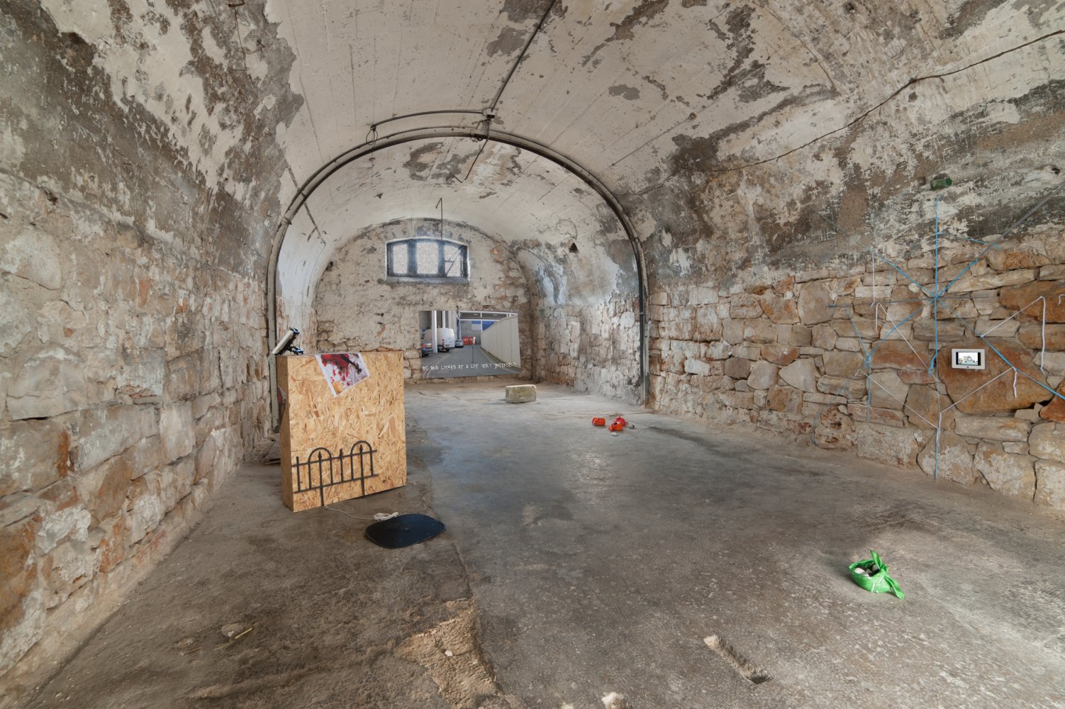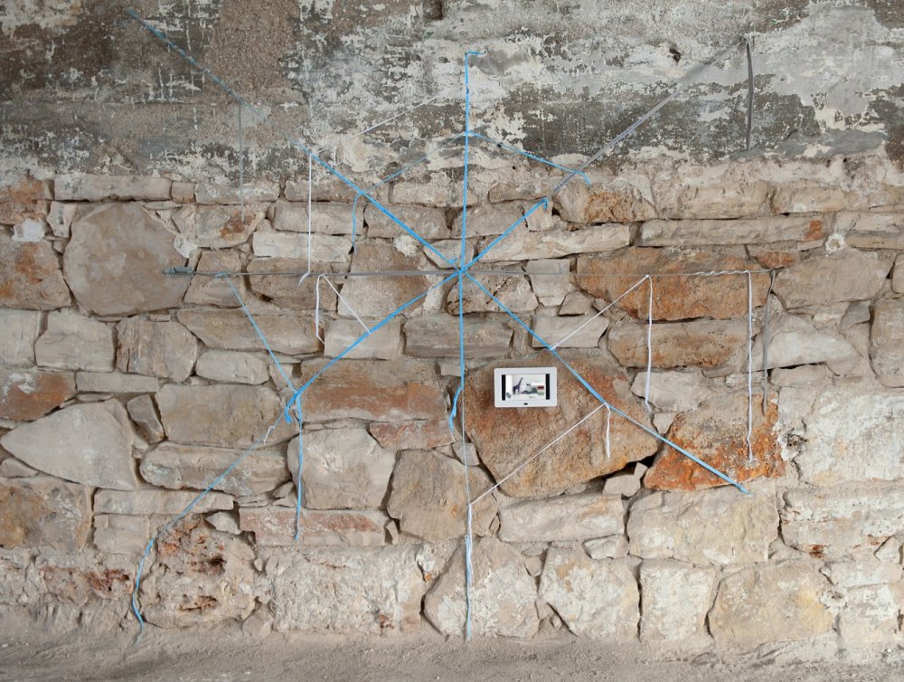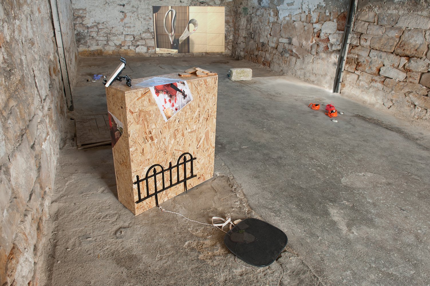 The three day exhibition marked a year since Fabio Santacroce founded the aforementioned “art staircase”, that often exhibits off-site, by taking up residence across the three rooms where the spray-paint tag of ‘Brian’ and his love were discovered at the train station of Bari, Italy. It acts as a nucleus in a synaptic network of information shared between nine artists that include Rosa Ciano, Benjamin Asam Kellogg, Lucia Leuci and Yuri Pattison; their self-contained clusters of personalised information presenting images and objects as codes and signifiers that can be read any number of ways.