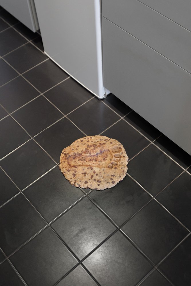 There’s a strong sense of boredom to Crews’ writing, as there is to the burnt saucepan viewed through a browser window and ‘Inadequate Door Snake’ (2015) of Quiet Enjoyment. Meanwhile, various small tokens of delight come in a ‘Happy Powerpoint’ (2015), a ‘Big Biscuit’ (2015) with a footprint in it and a photo of Morse’s ‘Farewell Party at Barkly Place’ (2015) pinned to a grey pinboard (“Make the house look like Pinterest”).