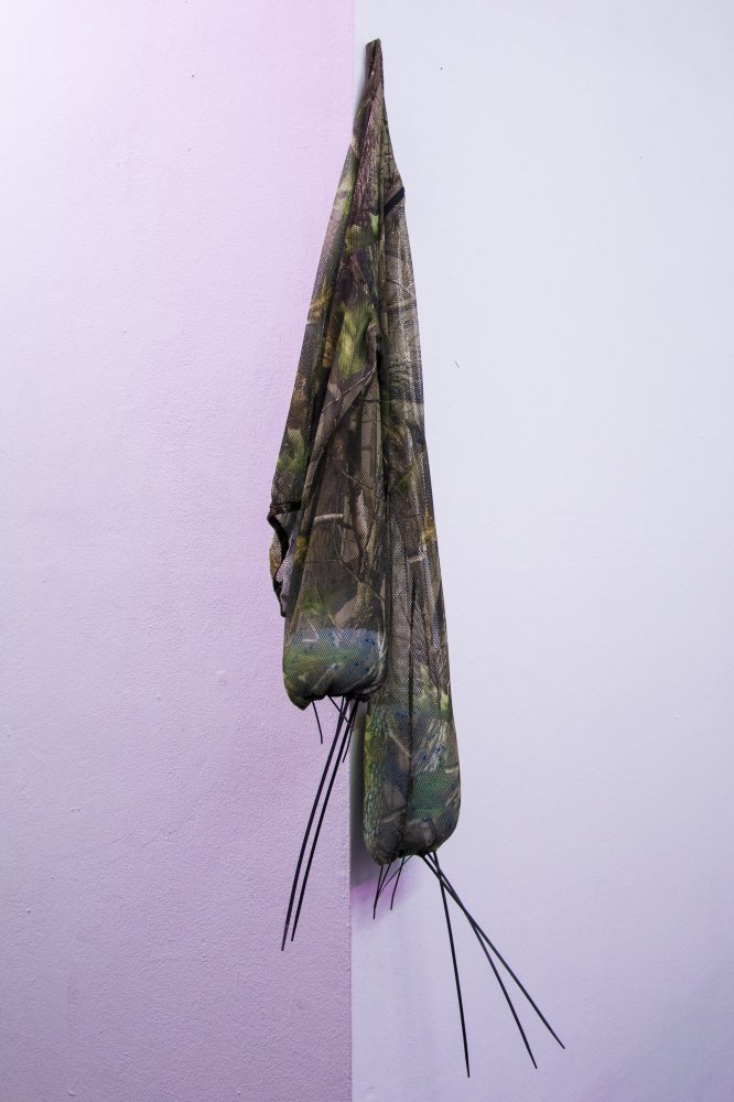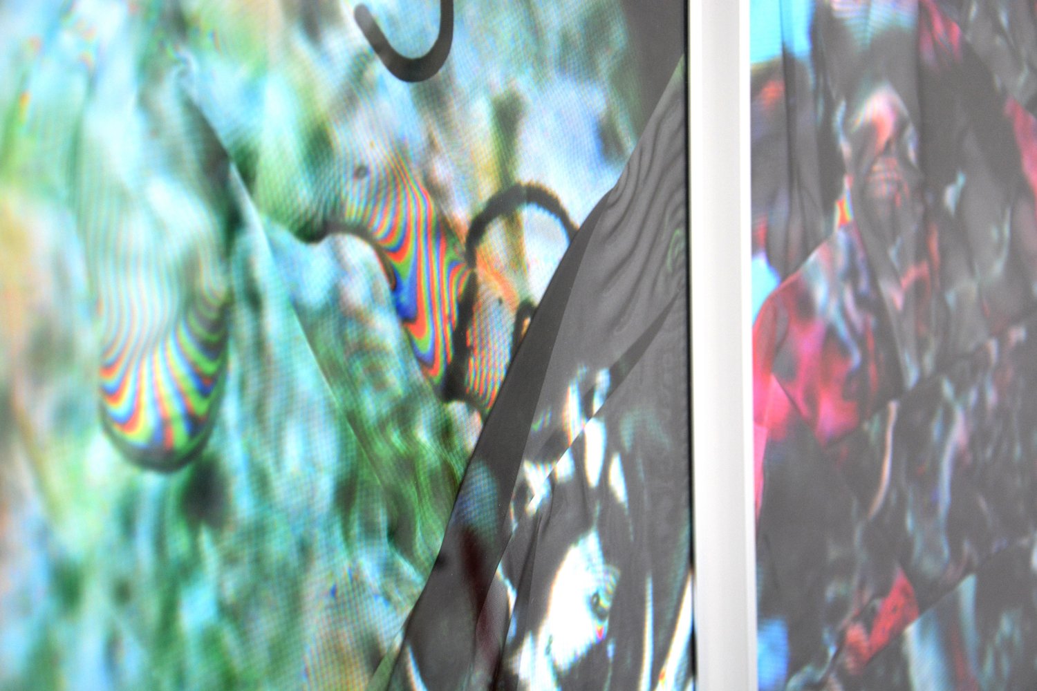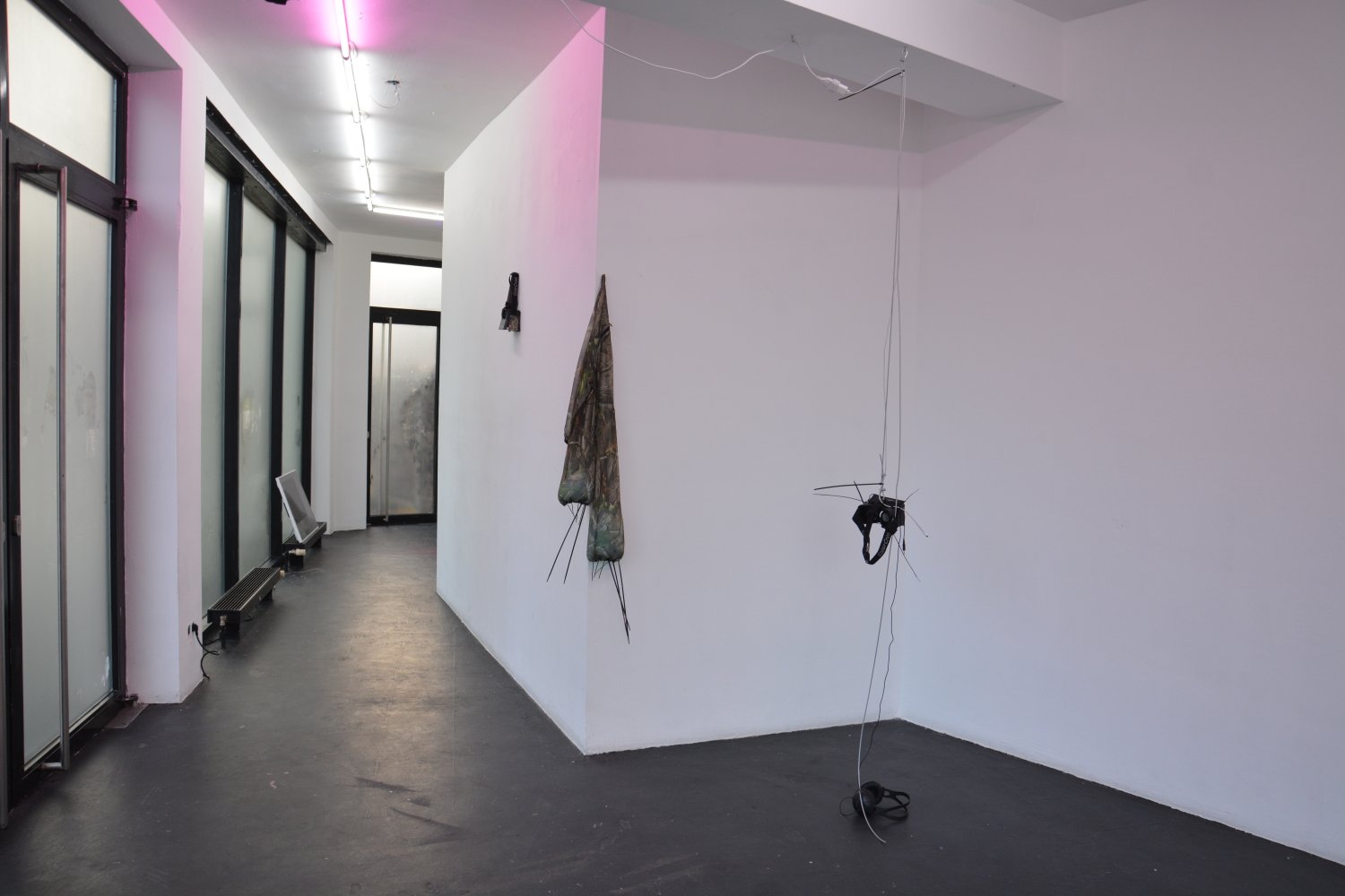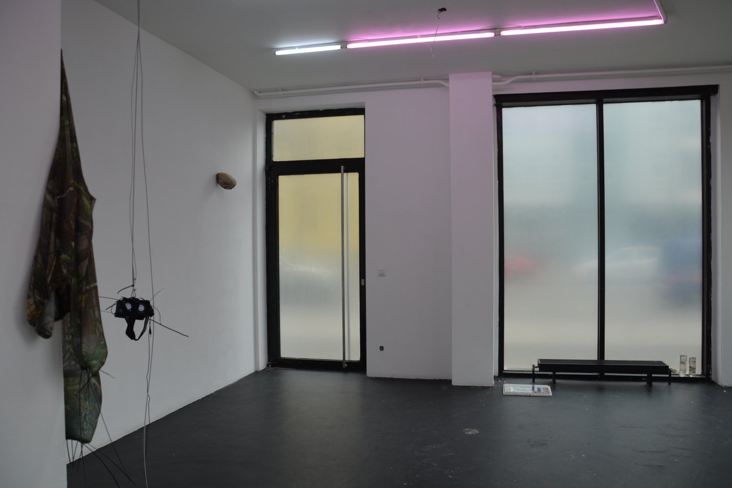 Antoine Renard, Jurassic Haze (feat Anthony Salvador‘s ‘DONTBRINGAKNIFE2AFISTFIGHT’ (2014). Installation view. Courtesy Center, Berlin.