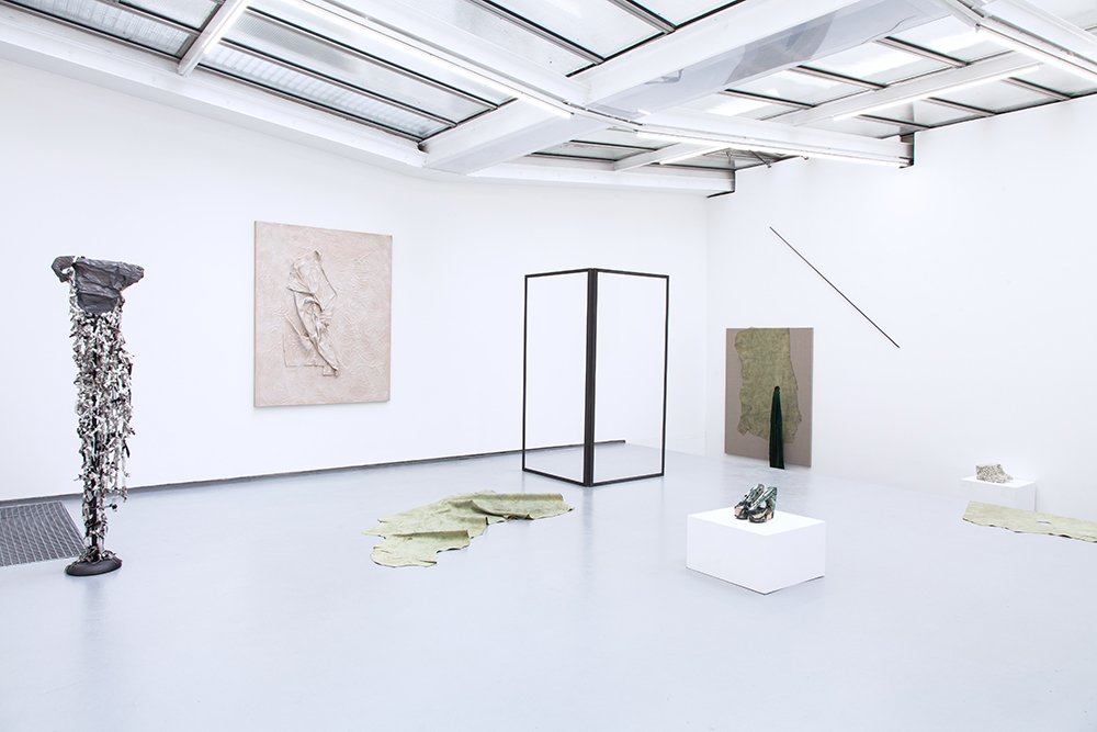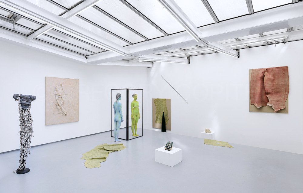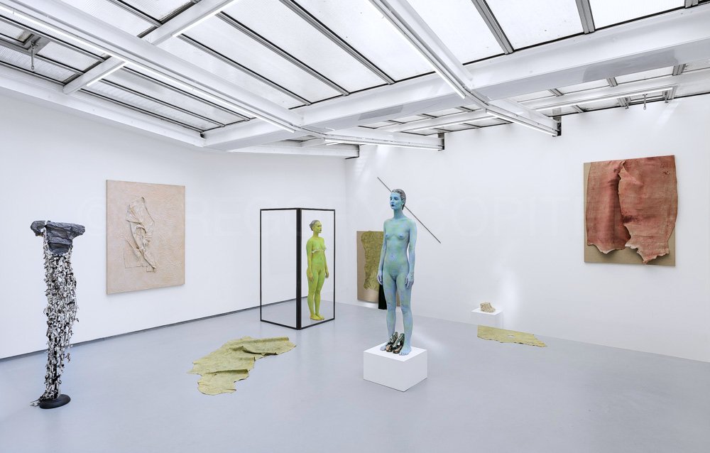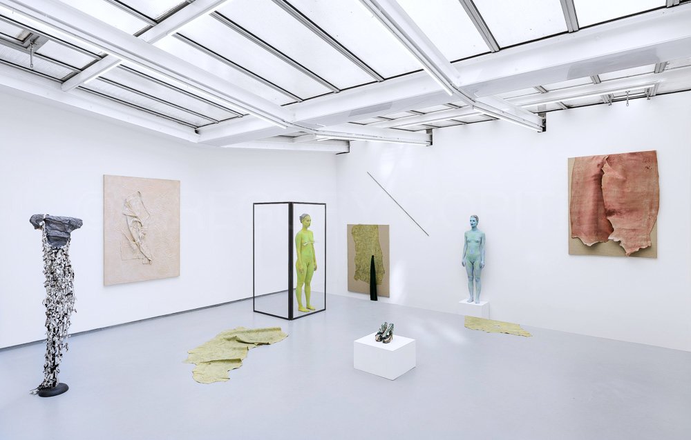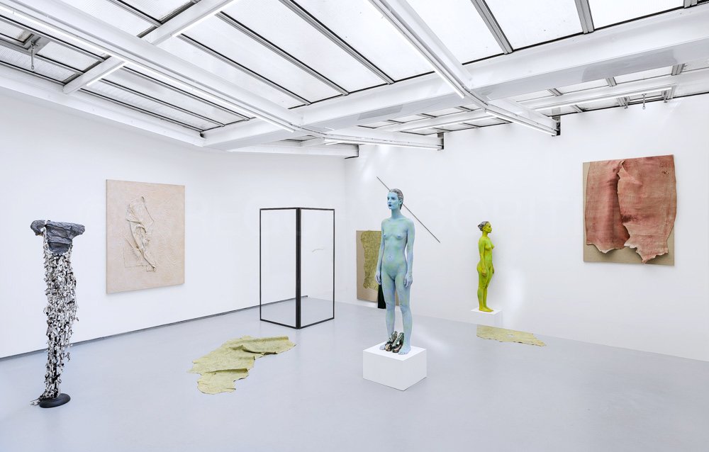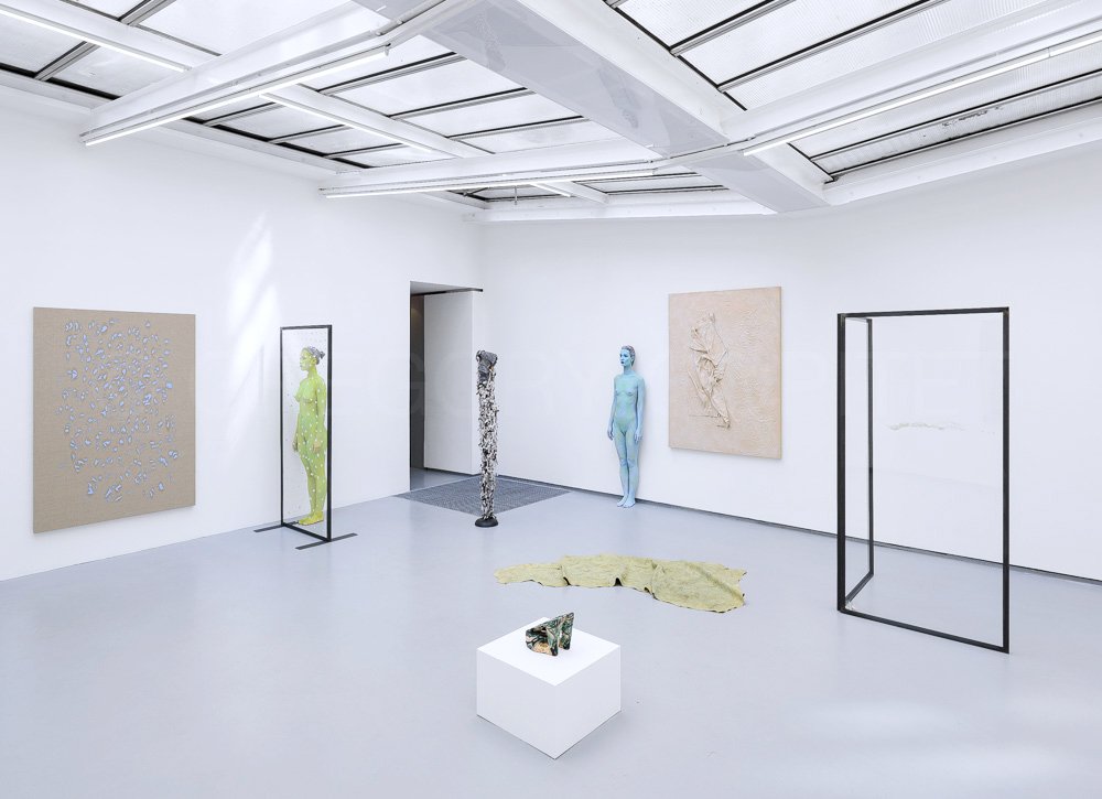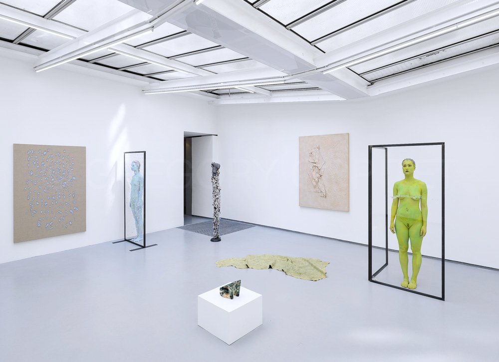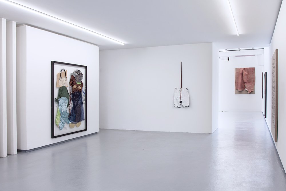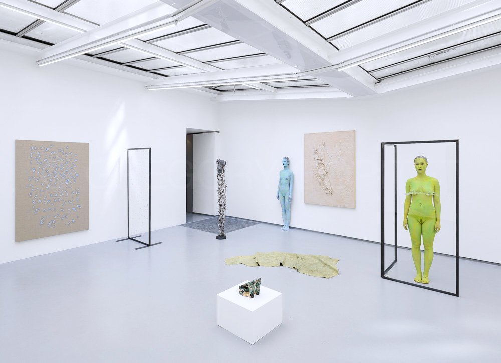 Donna Huanca‘s recent exhibition Water Scars (exhibition photos, top right), running at Paris’ Galerie Chez Valentin from April 18 to May 16, deconstructs this figuration, detaching the human body from what Clara Guislain’s exhibition text calls the “overdeveloped, fetishistic tactility of cultural processes”, of clothing and skin.