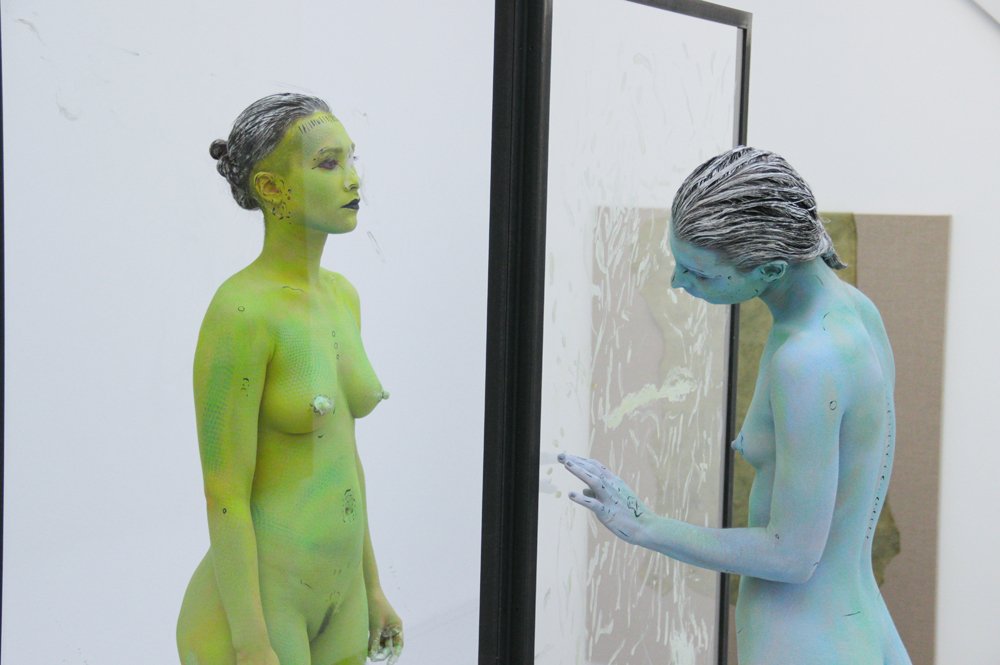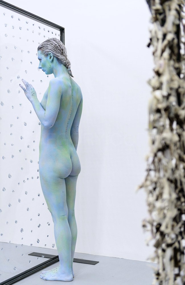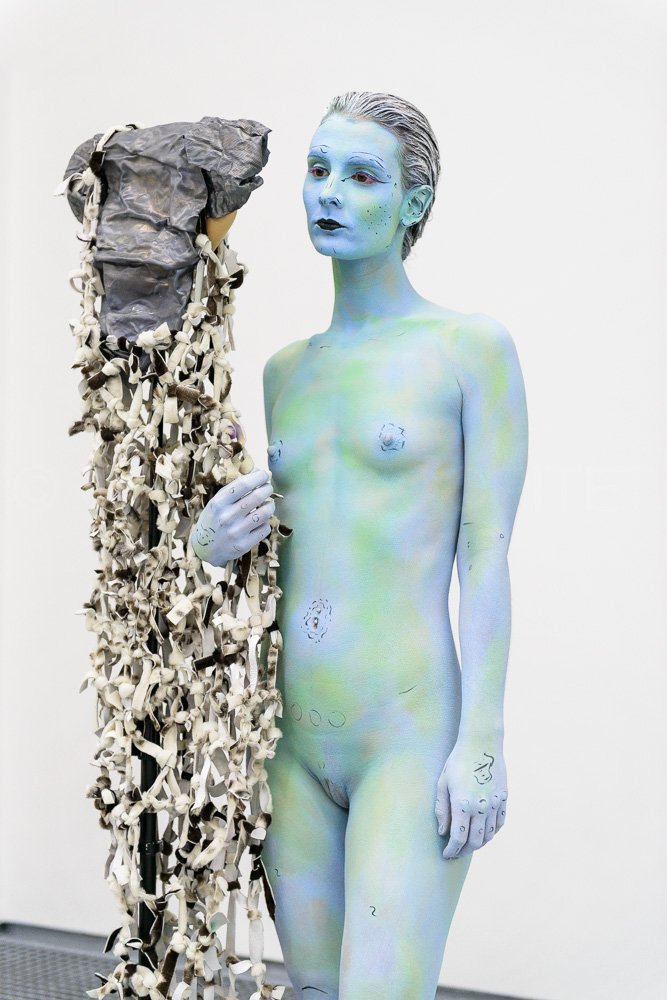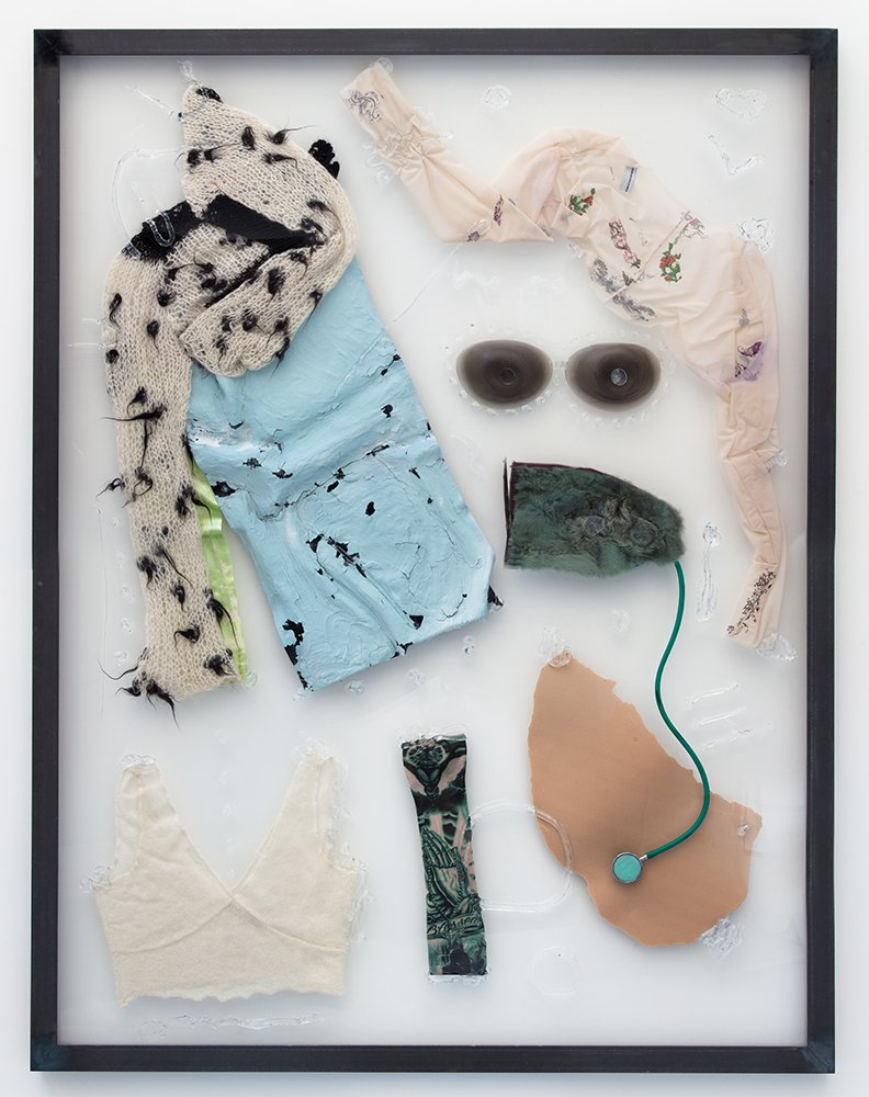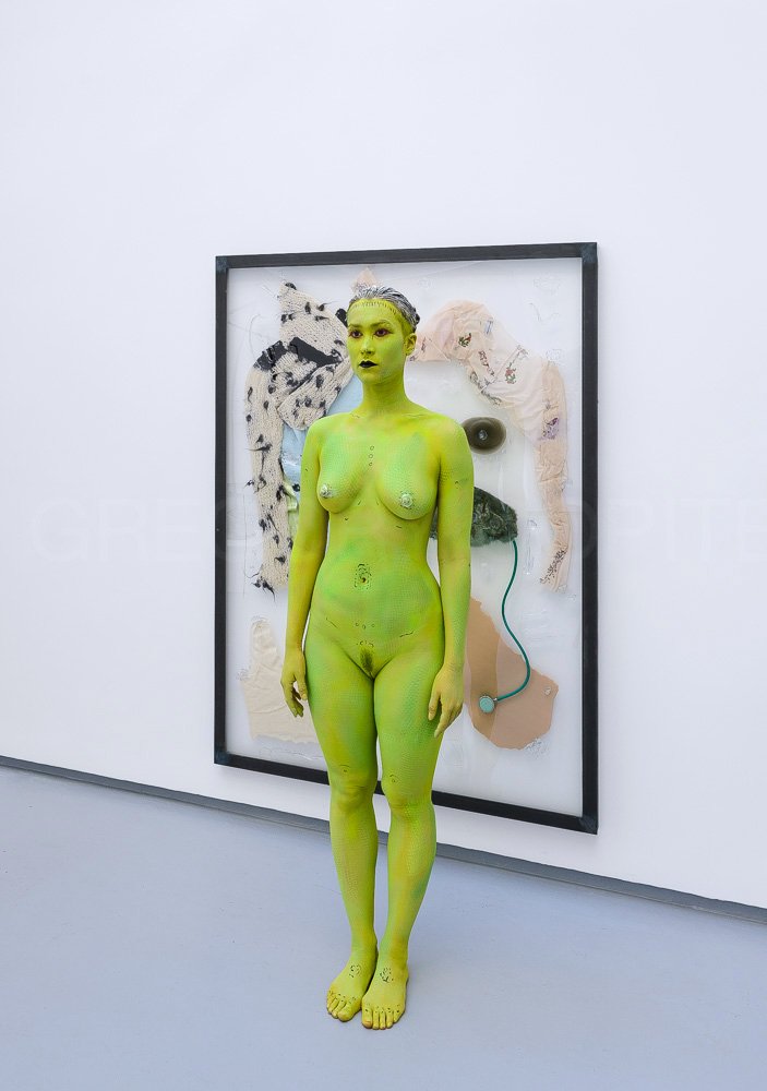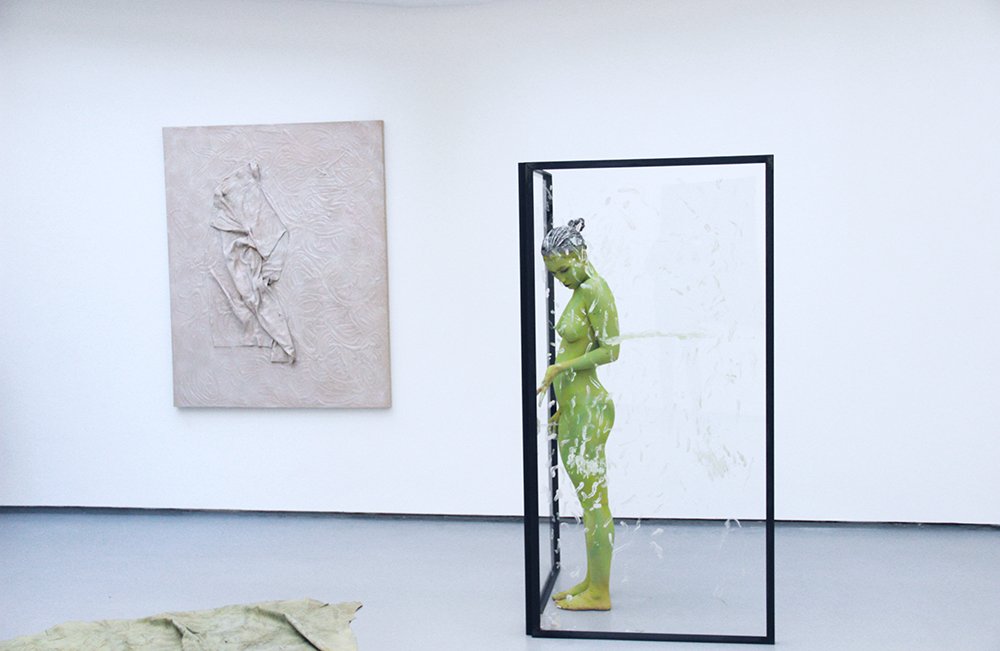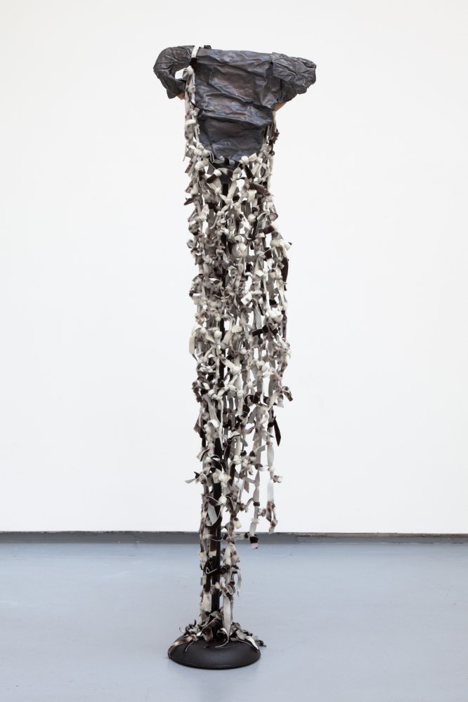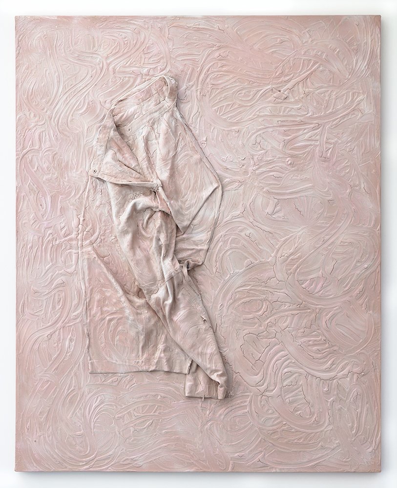 Donna Huanca‘s recent exhibition Water Scars (exhibition photos, top right), running at Paris’ Galerie Chez Valentin from April 18 to May 16, deconstructs this figuration, detaching the human body from what Clara Guislain’s exhibition text calls the “overdeveloped, fetishistic tactility of cultural processes”, of clothing and skin.