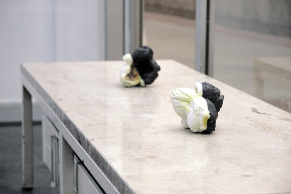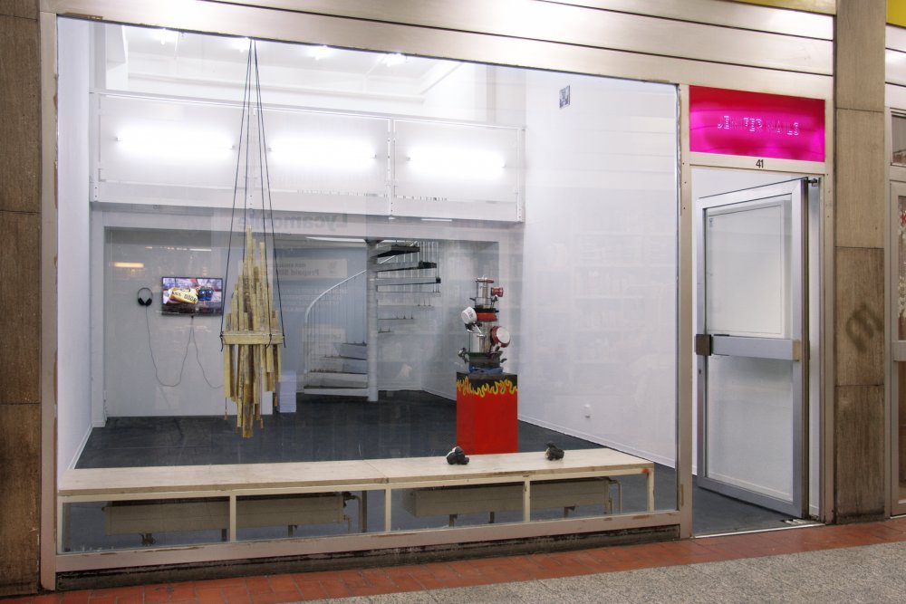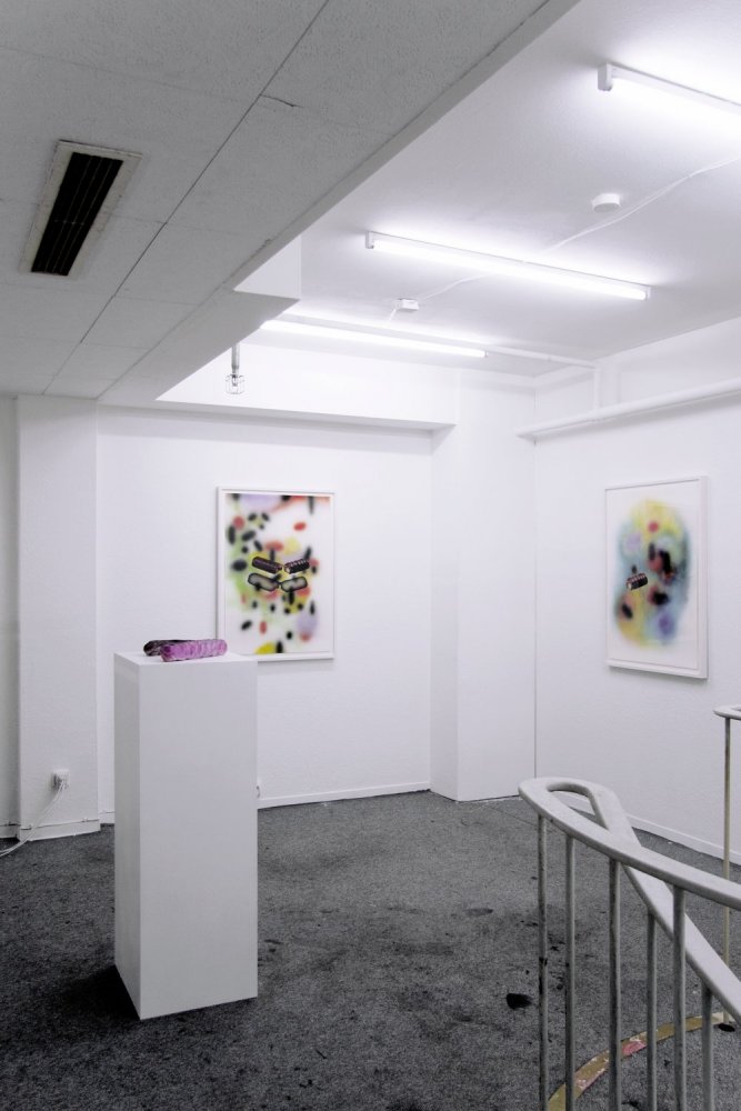 But there are worse things to dream of than the moon. There are worse things to base on exhibition on. “It’s fun to think about an exhibition of art on the moon”, is how Sam Korman‘s ‘Art on the Moon’, used as the only introduction to the Amy Granat- and Annina Herzer-organized exhibition Smoothie Conference (photos, top right), which was on at Frankfurt’s Jenifer Nails from April 11 to May 23, begins.