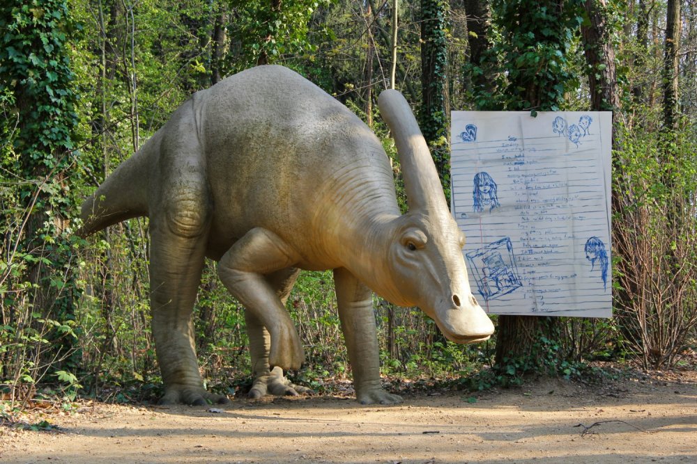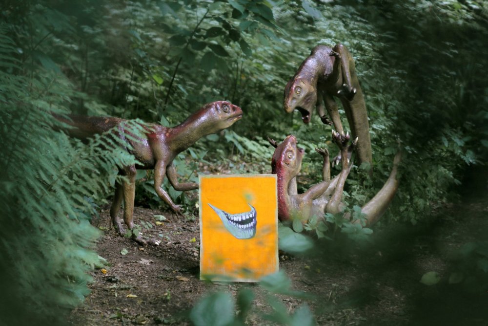 The eleven visual artists have all been asked to create a dinosaur likeness, with Zoe Barcza creating a Plateosaurus titled ‘Shred IV’, Ann Hirsch offering an Anatosaurus titled ‘My Starving Public 1998’, and Tom Davis creating a Campsognathus titled ‘Ovid-Acteaon’. The remaining artists include Scott Gelber with a Diplodocus hallorum titled ‘RothkoNetflix1’, Sayre Gomez with a Antrodemus titled ‘Thief Painting in Violet’, Martin Mannig with a Heterodontosaurus tucki titled ‘Psycho’ and Jaakko Pallasvuo with a Ornitholestes hermanni titled ‘Amusement Park’. There’s also Anselm Ruderisch‘s Polacanthus titled ‘Voyager1’, Joshua Abelow with a Triceratops prorsus titled ‘Untitled (Witch)’, and Iain Ball with a Triceratops horridus titled ‘(res) terbium series 3’. Hornig and Barsch also contributed pieces to the exhibition with, respectively, a Ceratosaurus nasicornis titled ‘Stop Aids redux’ and a Tyrannosaurus rex titled ‘O. K.’s Time Travels (Back to the Future)’, accompanied by written contributions from Johannes Thumfart and Hendrik Niefeld. **