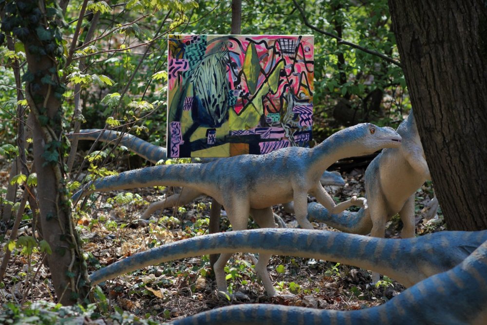 If you wait for something long enough it’ll come back in style, and dinosaurs are coming back with a vengeance of all things though extinct. Jurassic Paint, the second online show by New Scenario, went live on their website in early June. The group exhibition, shot in the forest of Saurierpark Kleinwelka, a dinosaur park filled with life-size dinosaur models, combines “two prehistoric yet resilient species” for a collection of canvas works from eleven visual artists.