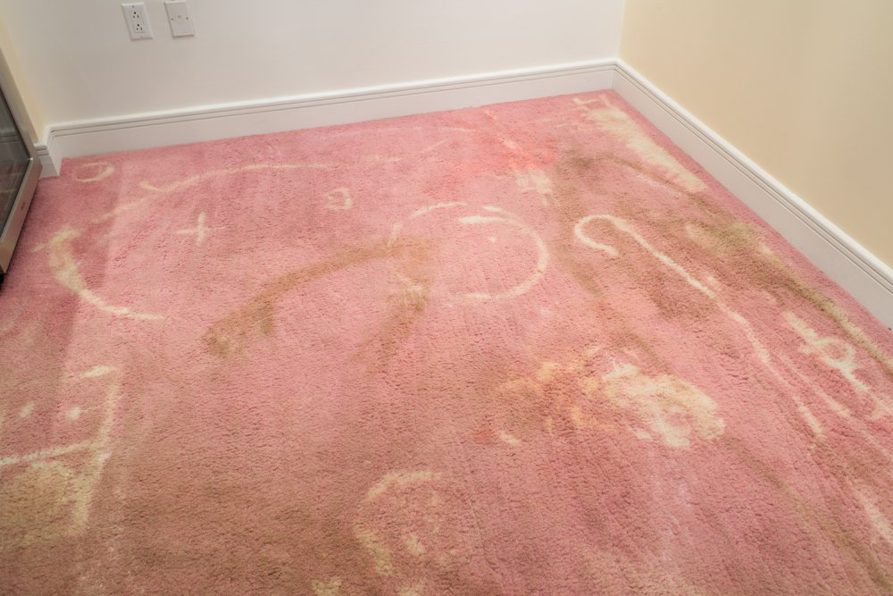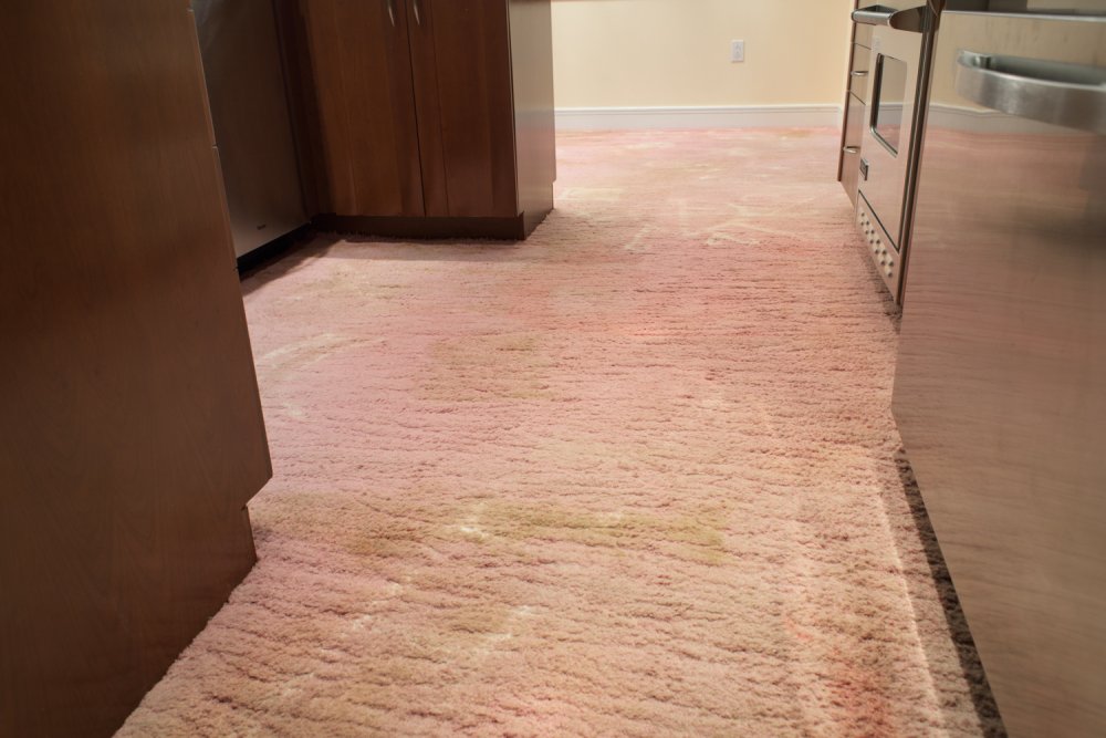 You could be forgiven for not noticing where the art begins. A strange and wonderful effect of the Wet Eyes exhibit at Meyohas, running November 20, 2015, to January 10, 2016, —an apartment gallery on the Upper East Side—strikes me on my second walk through the pieces. The works and space bleed into each other, jostling in a friendly way to determine the context for all the other art. The result is multiple and simultaneous contexts, a tapestry of meaning that shifts with the eyes’ movements. I start on the carpet past the kitchen, and notice how dirty it is. Shapes are scrawled into it. I find myself peering down, discovering my immersion in ‘rosie path; magic carpet’ (2015) by Daniel Klaas Beckwith, a carpet dirtied and scrawled with symbols. The overall impression is of hieroglyphs chalked into a rug. A number of the images clearly represent objects –there is a sword and saw, for example –while others are more ambiguous. A crozier and cross shaped patch suggests traditional insignia of a bishop’s authority, a fascinating evocation of hierarchy and authority which lies only a few feet from another ambiguous image, one that looks a lot like the Zen enso, the incomplete circle representing totality, emptiness and infinity. After a few minutes of peering at the carpet I’m struck by my physical posture: crouched, bent, unconsciously remolded to decipher the world beneath my feet.