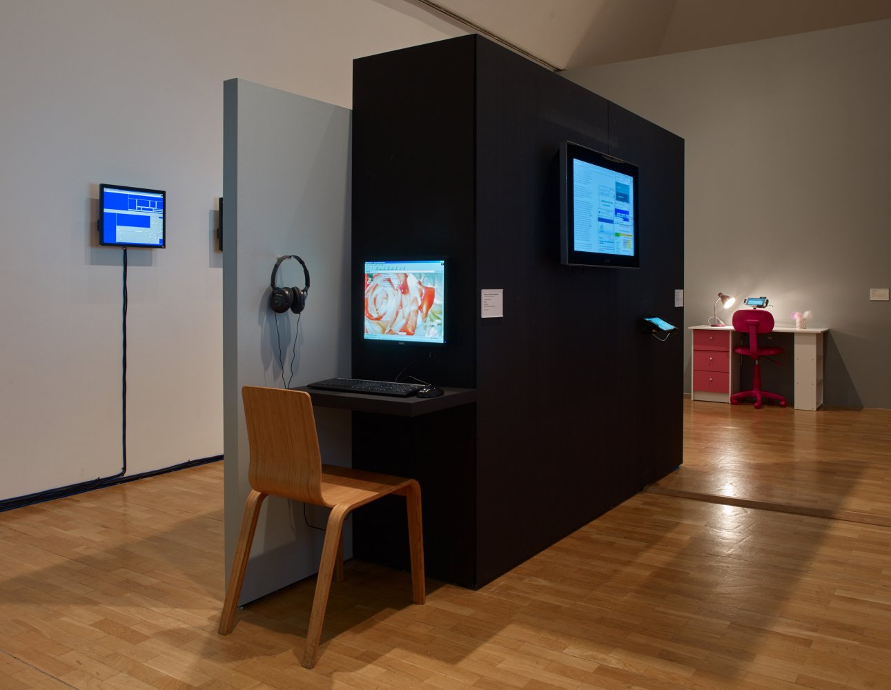 The ‘Net Art’ room shows works selected in collaboration with online organization Rhizome. Here, biographies are incorporated. In Ann Hirsch’s ‘Twelve’ (2013) as the artists chat room dialogues, and in Martine Syms’ ‘Reading Trayvon Martin’ (2013), an ongoing work that tracks Syms’ archiving and bookmarking of web pages relating to the case.