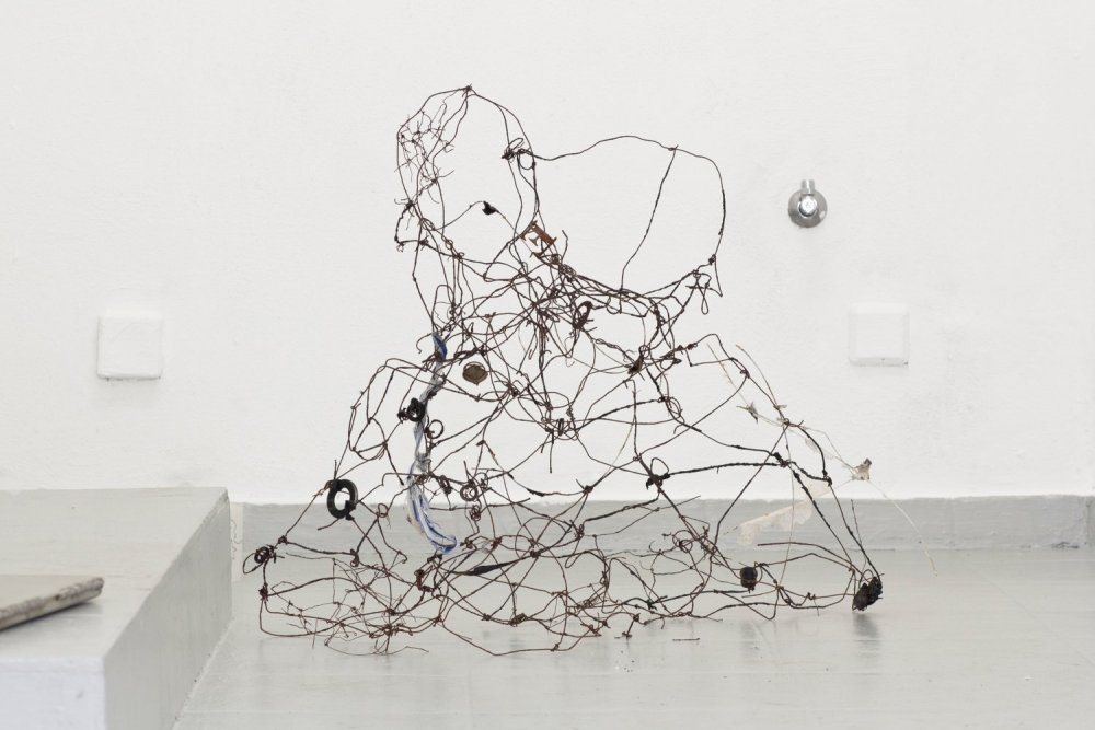 Group exhibition, No Need to Hunt – We Just Wait for the Roadkill curated by Paul Barsch brought together the work of eight artists at Dresden’s S T O R E from September 26 to October 10, 2015. Inanimate sculptures and objects sit quietly in conversation with one another; their potential power as vehicles of speech feels fragile and self aware. The accompanying text, and this segment in particular, is integral to the reading of the exhibition: