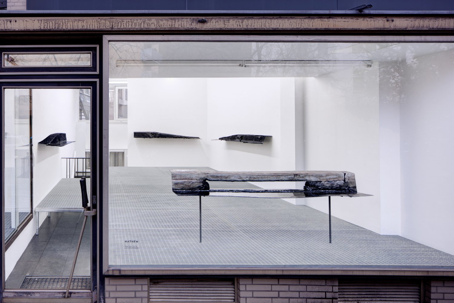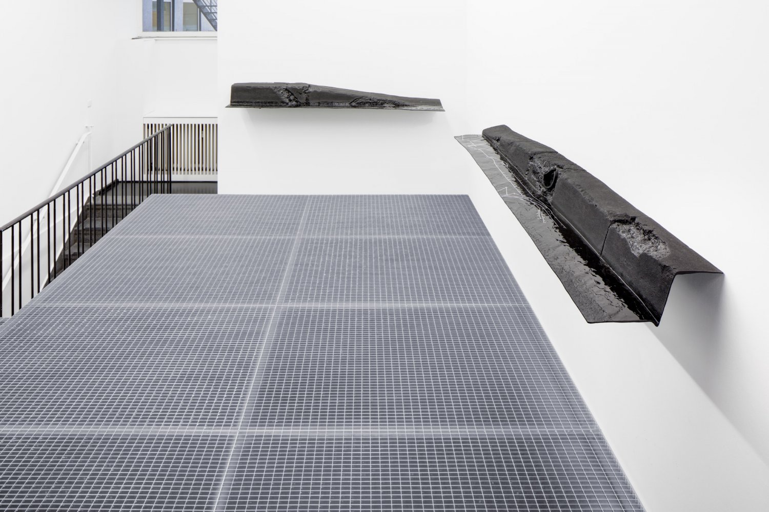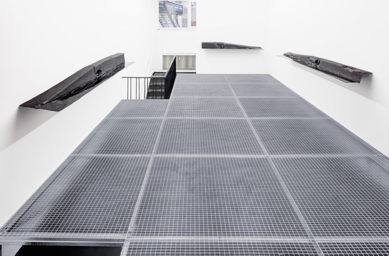 ‘Are you functioning harmoniously?’ asks Cooper Jacoby in his solo show Stagnants, running at Berlin’s Mathew Galerie from January 29 to March 19. In sympathy with the show’s content perhaps, the gallery is tucked away on Schaperstrasse in Berlin’s West End, beside a main thoroughfare moving traffic quickly across the city. Upon entering the space you immediately step upwards onto an augmented steel grate flooring, the height of which is just above comfortable stepping distance (certainly for short people like myself). Hence you are acutely aware of the importance of your position and begin to consider what else may lie beneath your feet.