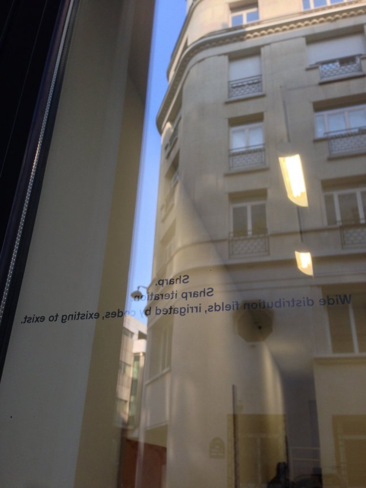 Patch, a two person exhibition of works by Shanta Rao and Jo-ey Tang, ran from October 3 to November 7, 2015 at Paris’ Galerie Nathalie Obadia. Focusing on a piece of material that is used to cover something else, the press release places the show within a context of varying patch types: “…software code that fixes a bug; a small piece of material to mend a garment; nicotine substitute; an indefinite period of time; a protective covering over a wound or an injured eye; a cloth badge worn as decoration or insignia of an affiliation; a small plot of land or a gallery space…”