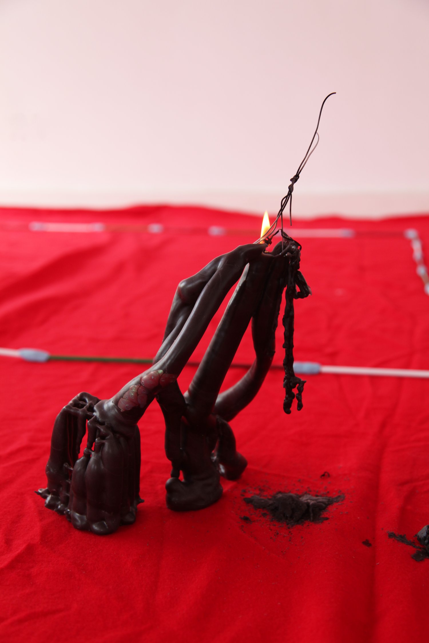 Other works are by Lonely Boys, Philipp Timischl, who both showed and performed in the latter’s solo show, They were treating me like an object. As if I were some sextoy or shit. I don’t wanna see them again early last year and Beatrix Curran’s ‘Fetish Instrument’ (2016) and Dawn Mok’s video, ‘Drapes’ (2016). They also share the projection space with Mujinga’s aforementioned ‘I Can’t’ (2014). Roland Mathias Gaberz, Kayla Guthrie and Rosa Rendl also show pieces.