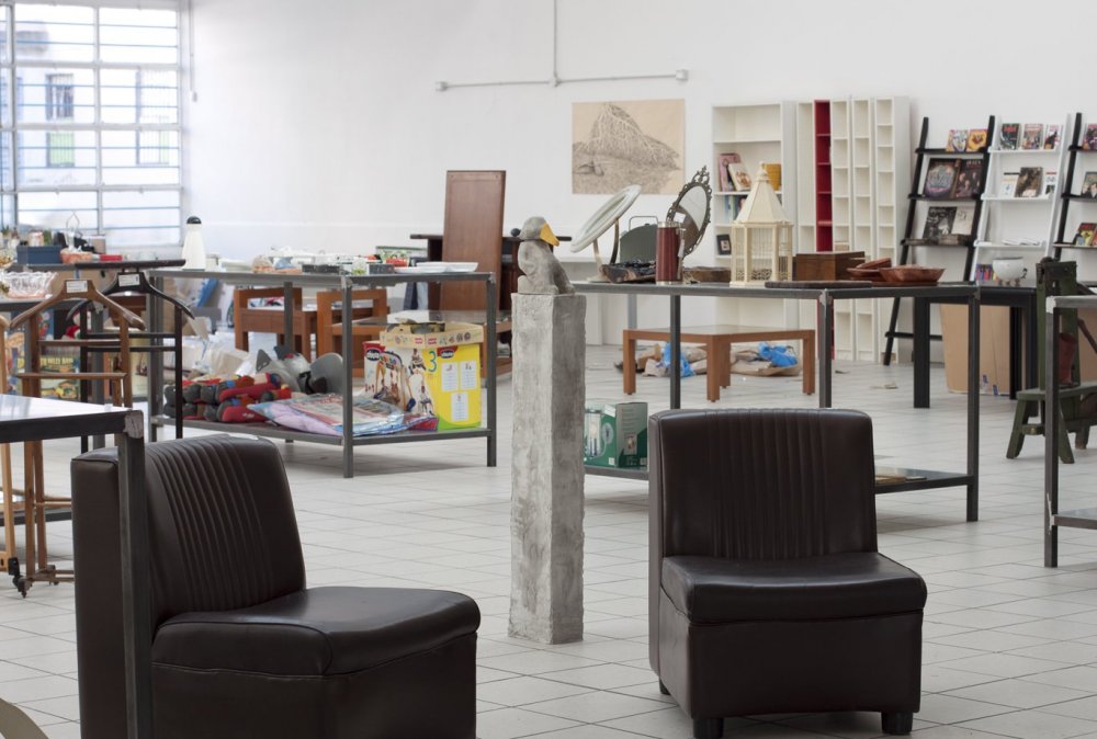 The focus of the exhibition is location; rather than placing the works in a traditional gallery space, the group applied to use the empty space on Zuretti road (a brand new used goods franchise). As the show progressed, the display area became more crowded day after day with new items for sale. Placed in the context of an exhibition where the majority of visitors would have been second-hand shoppers, the works were chosen and created in response to their display potential.