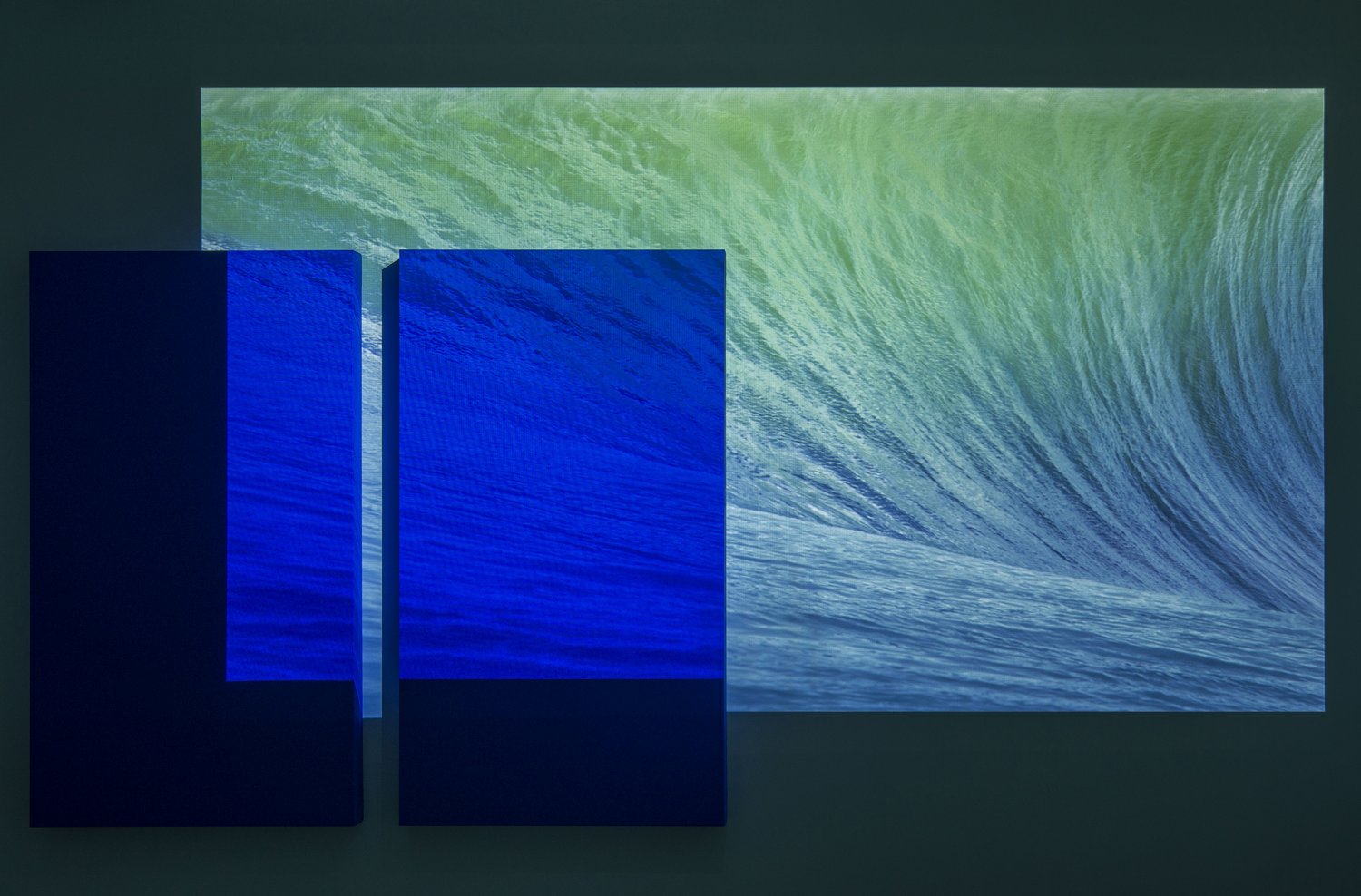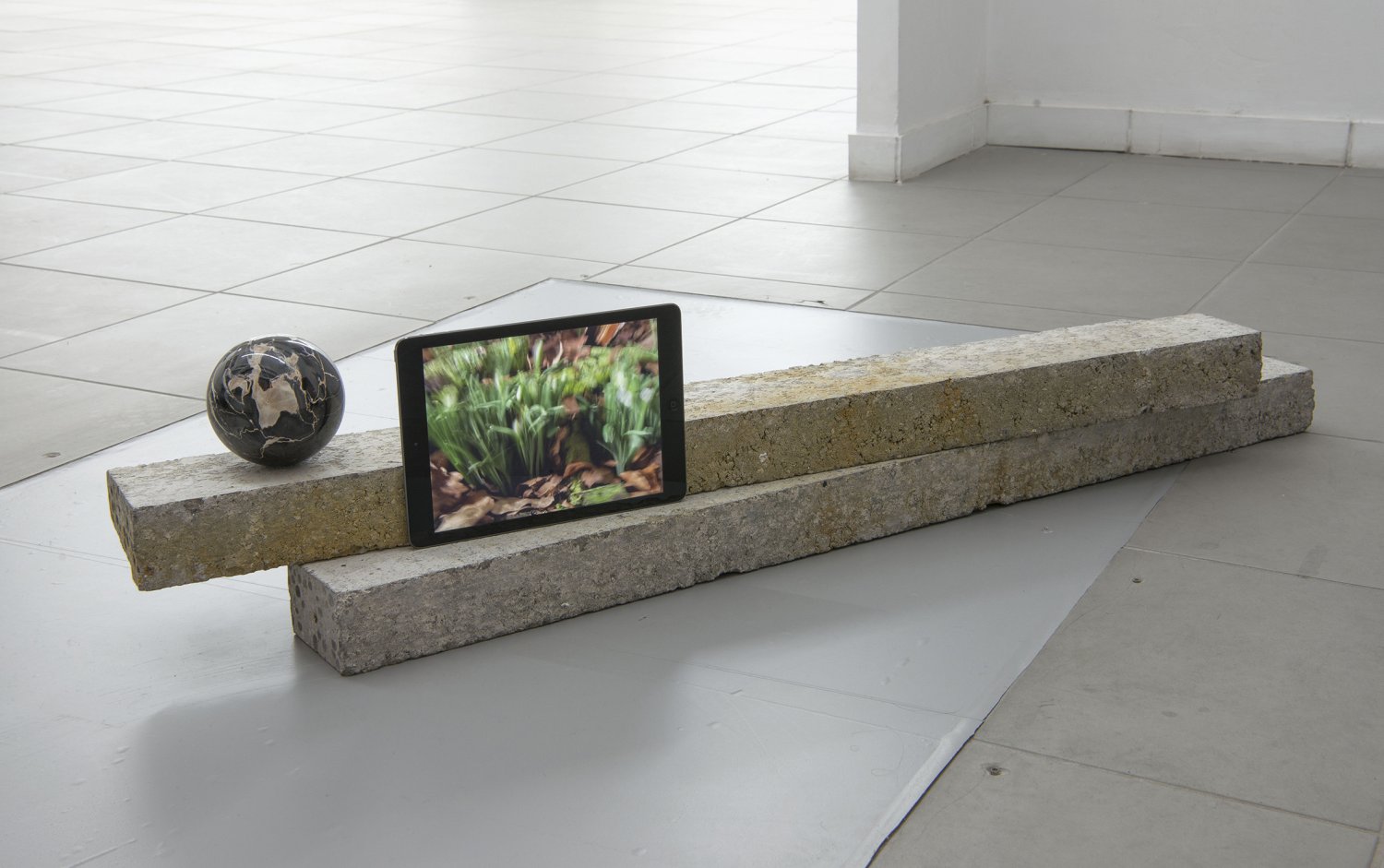 Strappato looks outward at images of earth and outer space to explore the relationship between landscape and consumer culture, and the production and distribution of images responsible for our aesthetic experience. ‘Journey’ as a mental and physical idea becomes the nucleus of the work, with constant references to dreamed landscapes and abstraction. Projections, iPads, laptops and TV monitors are recurring devices used to evoke and remind of the threshold between us and the infinite world. Expanding on his interest in the artificial and natural, Strappato explores the (in)authentic within what is considered exotic or familiar.**