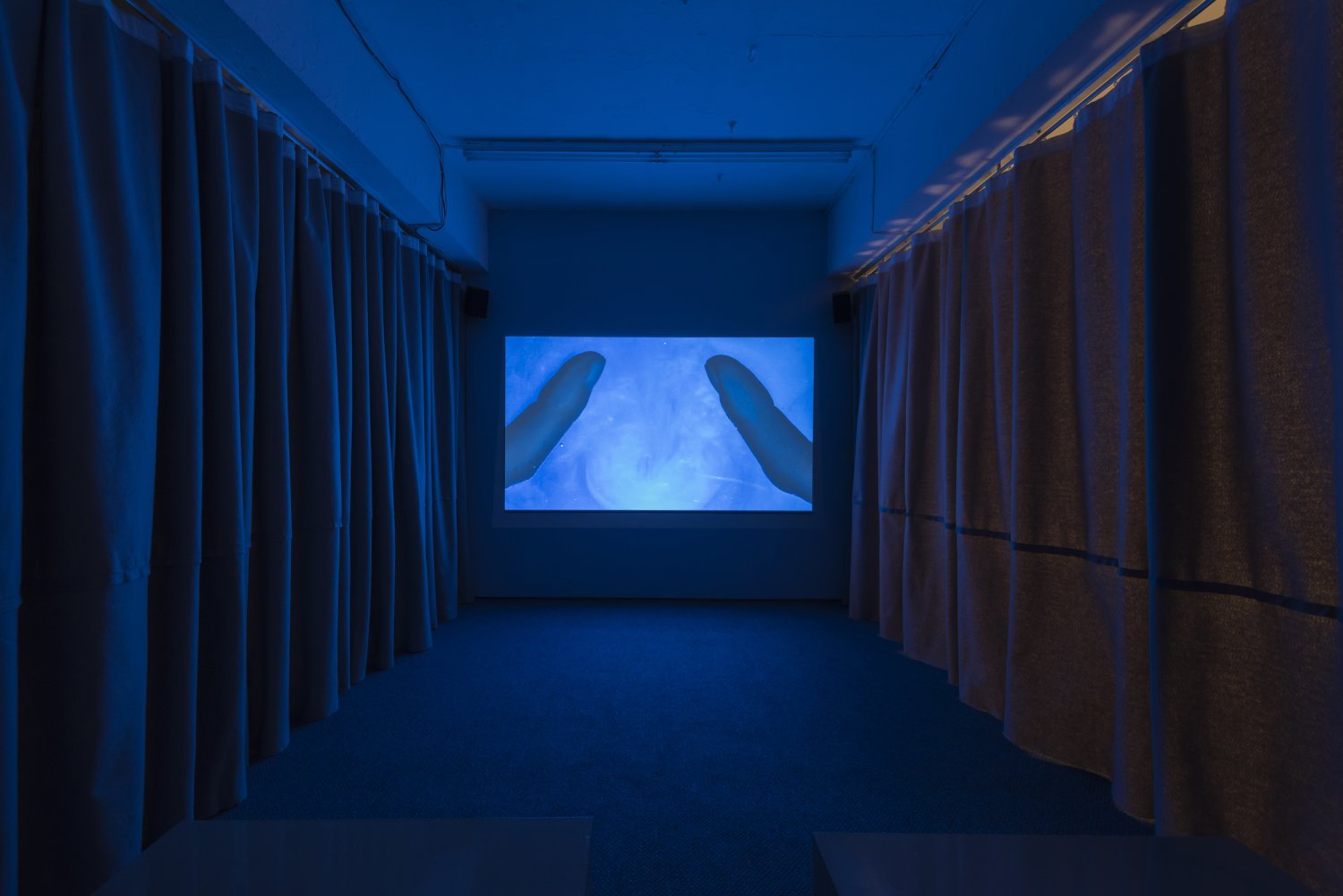 Marianna Simnett, ‘Blue Roses’ (2015). Installation view. Photo by Damian Griffiths. Courtesy the artist + Seventeen, London.