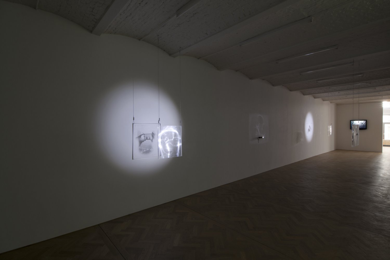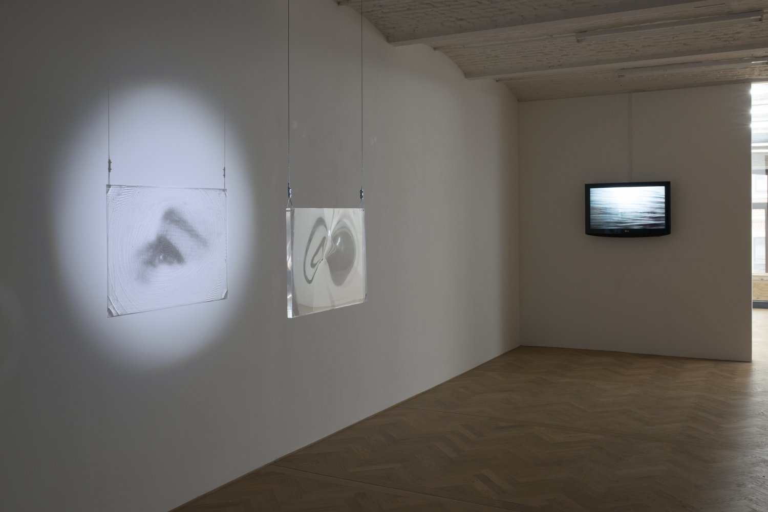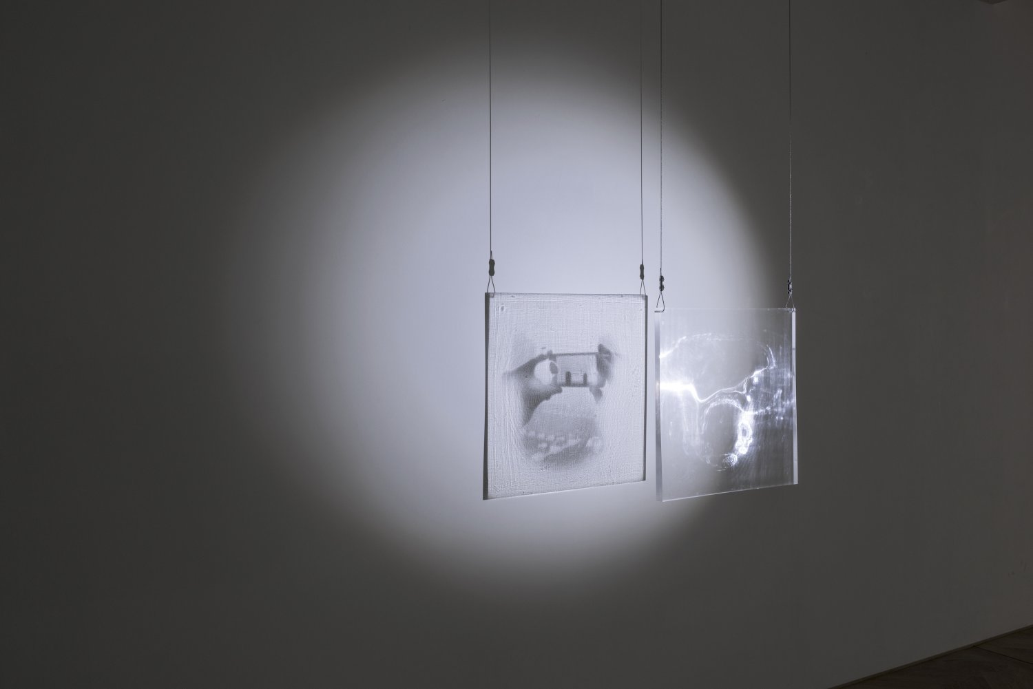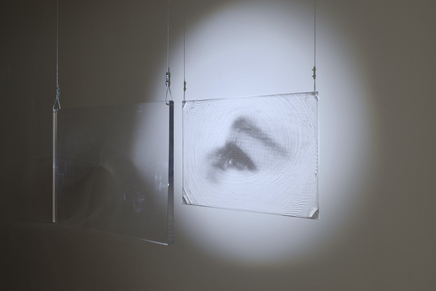 Also projected in the space was a video showing Sanderson’s making process behind each piece, or lens, touching upon the inherent archival nature that the exhibition and installation itself alludes to by housing these small-scale ‘devices’. They share an aesthetic with similar image-making objects used in early cinema, or with early projection techniques.**