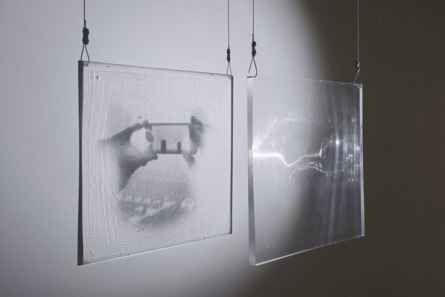The works in Solid State: Sunlight comprised of hanging sculptures that act as lenses through which an image is created and brought to life on the gallery wall in front with the help of the beam of a torchlight, producing “a new level of actuality” for the image in question.